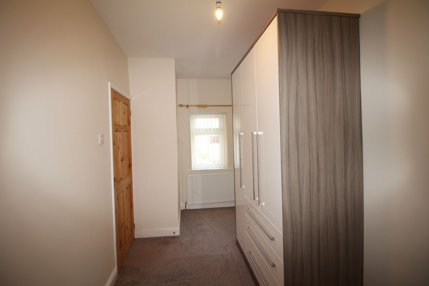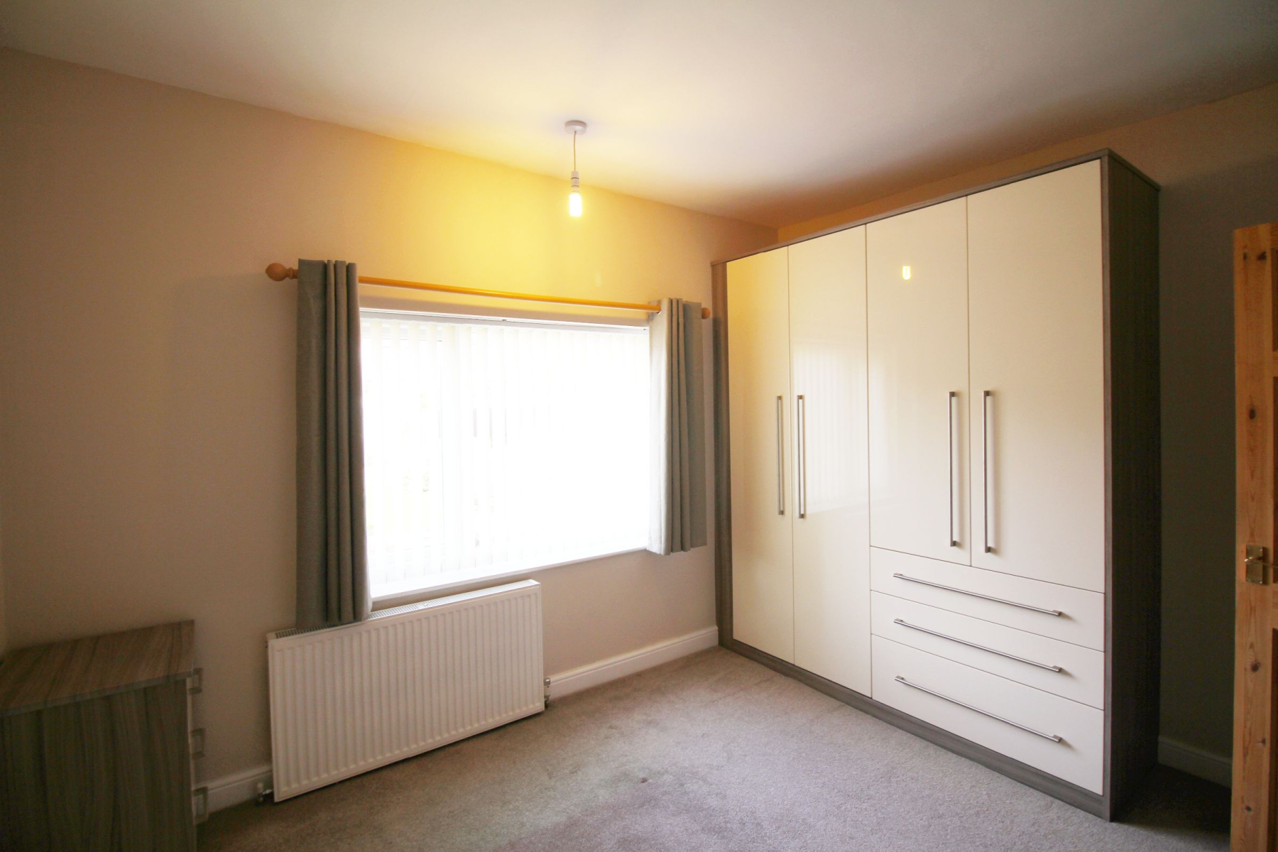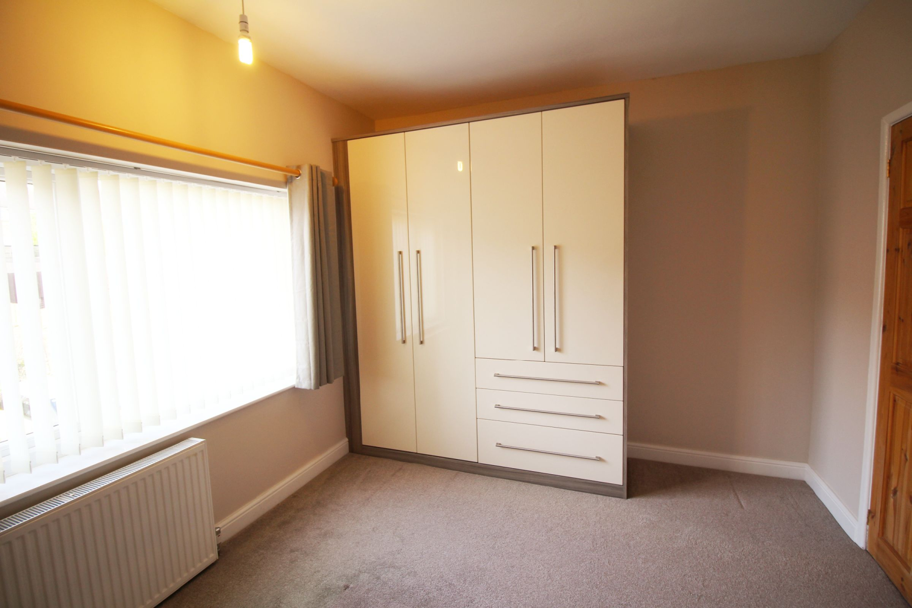 A well-proportioned and inviting second bedroom, finished in neutral décor to create a bright and versatile space. The room benefits from a modern wardrobe providing practical storage, along with a fitted blind to the window for privacy and a clean, contemporary look. Ideal as a guest room, child's bedroom, or home office.