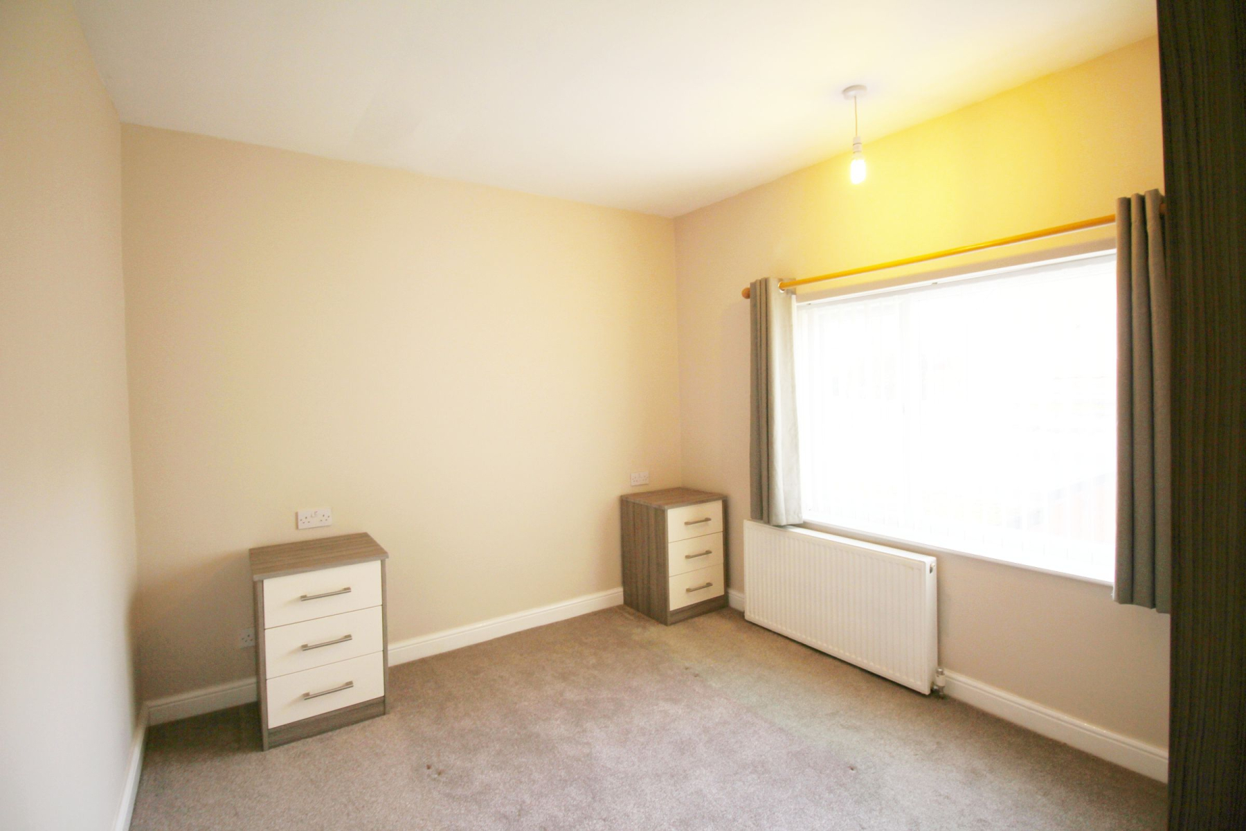 A generously proportioned and beautifully presented principal bedroom, finished in neutral décor to create a calm and relaxing atmosphere. The room benefits from modern free-standing wardrobes and matching bedside units, offering both style and practical storage. Fitted blinds to the window complete the space, providing privacy and a sleek, contemporary finish.