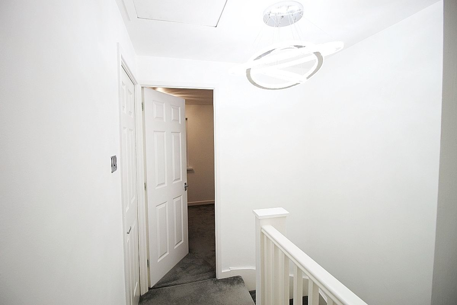 A carpeted spindled landing with a loft hatch creating storage and doors give access to two bedrooms and the family bathroom.