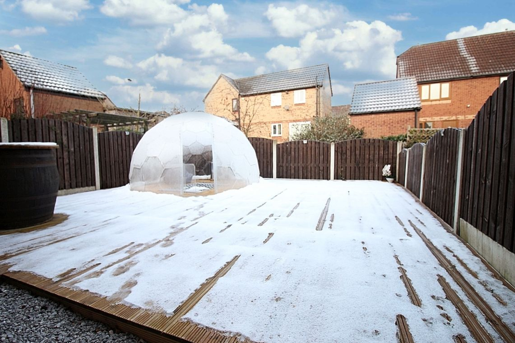 An attractive frontage with manicured decorative gardens, a driveway provides ample off-road parking which in turn leads to an adjoining brick built garage. The landscaped rear enjoys a large decked patio area with decorative stone, all enclosed.