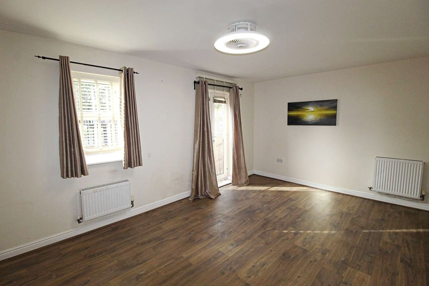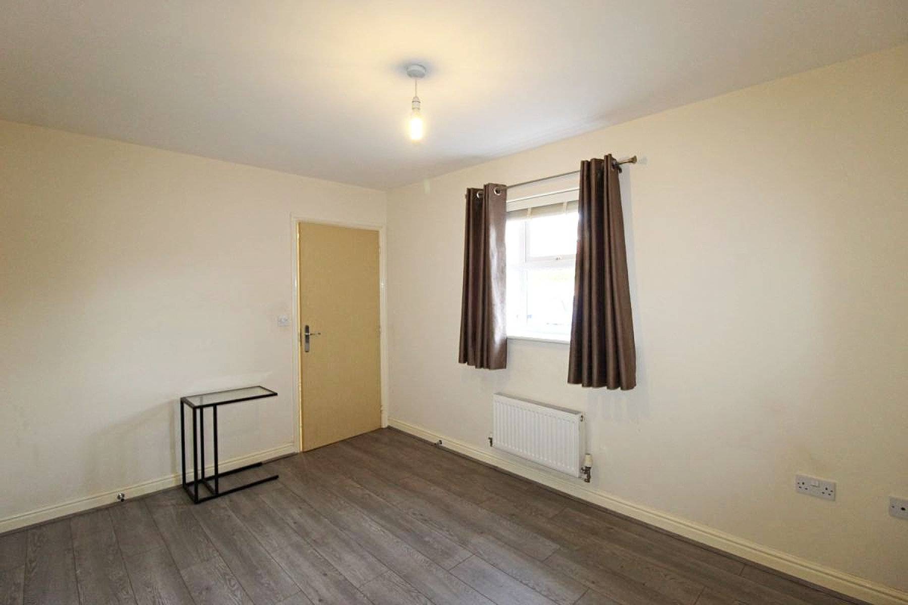 Good-sized double bedroom with rear-facing window, radiator, and laminate flooring. Door leading to the en-suite.