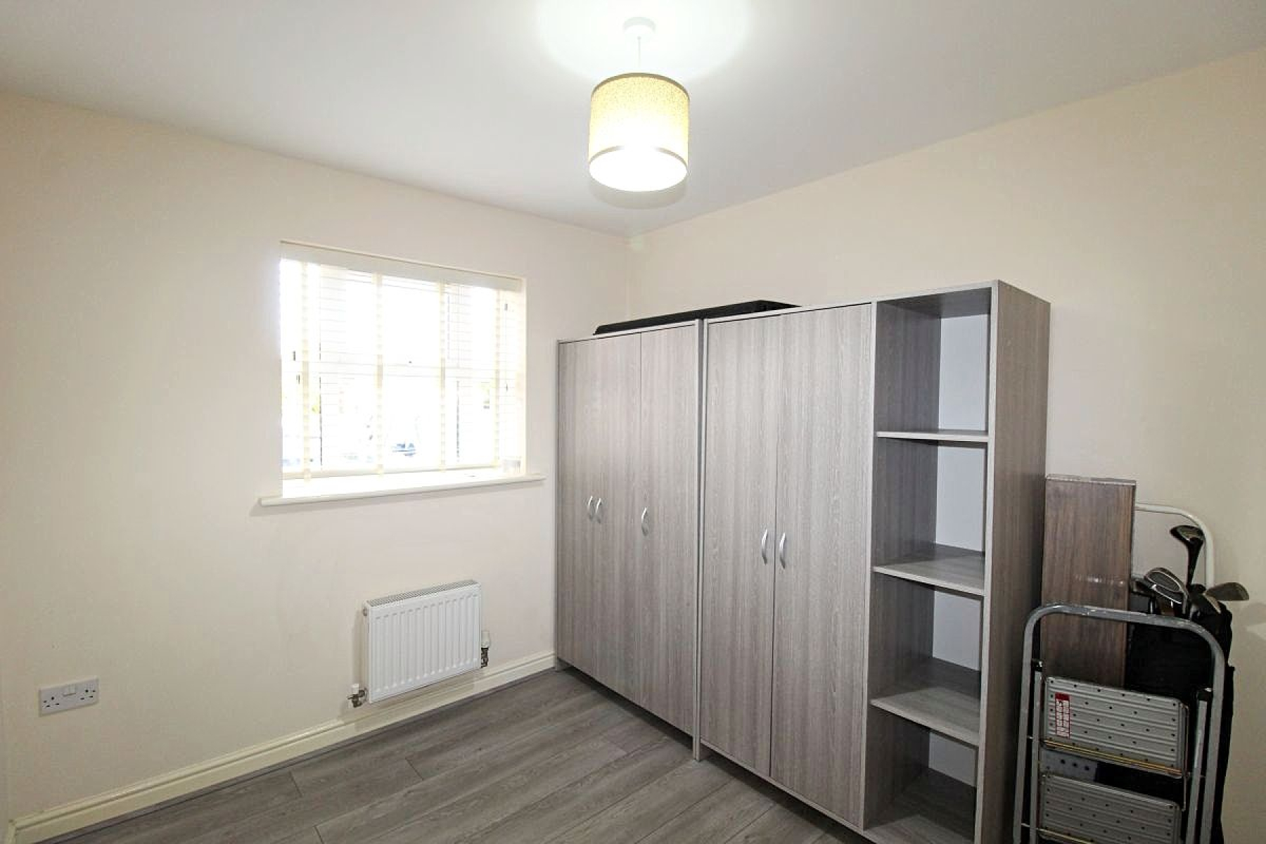 Another well-proportioned bedroom with laminate flooring, radiator, and window overlooking the rear.