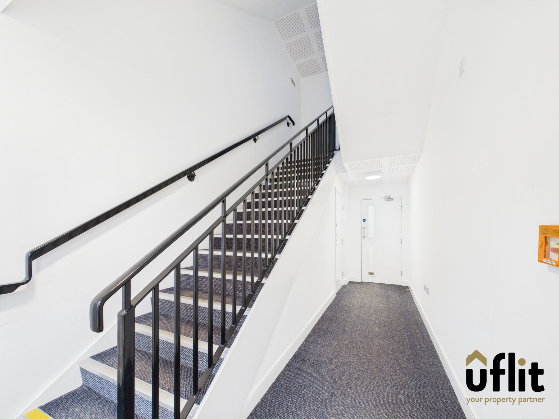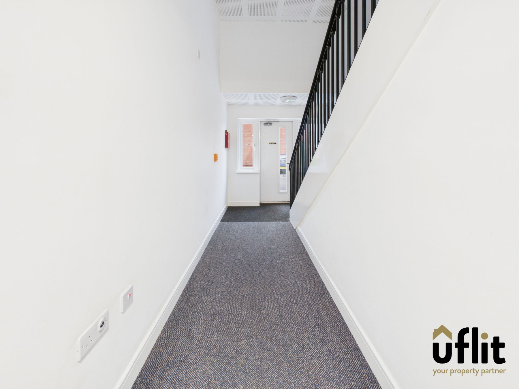 Access to the building is via a secure fob entry system with intercom-controlled visitor access, providing both convenience and peace of mind. A well-maintained, carpeted communal hallway leads directly to the ground-floor apartment, offering easy access along with a quiet and private position within this well-kept block.