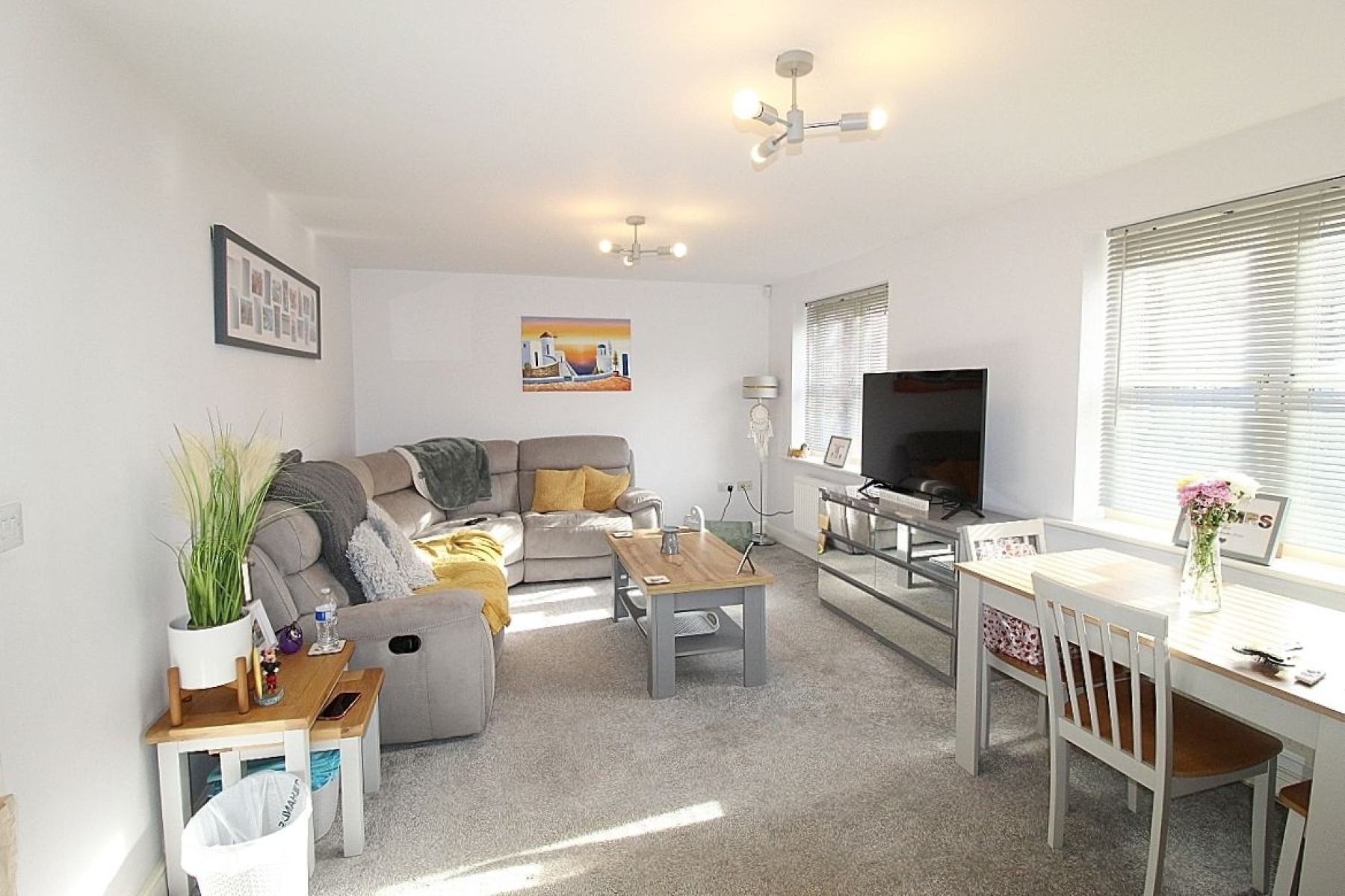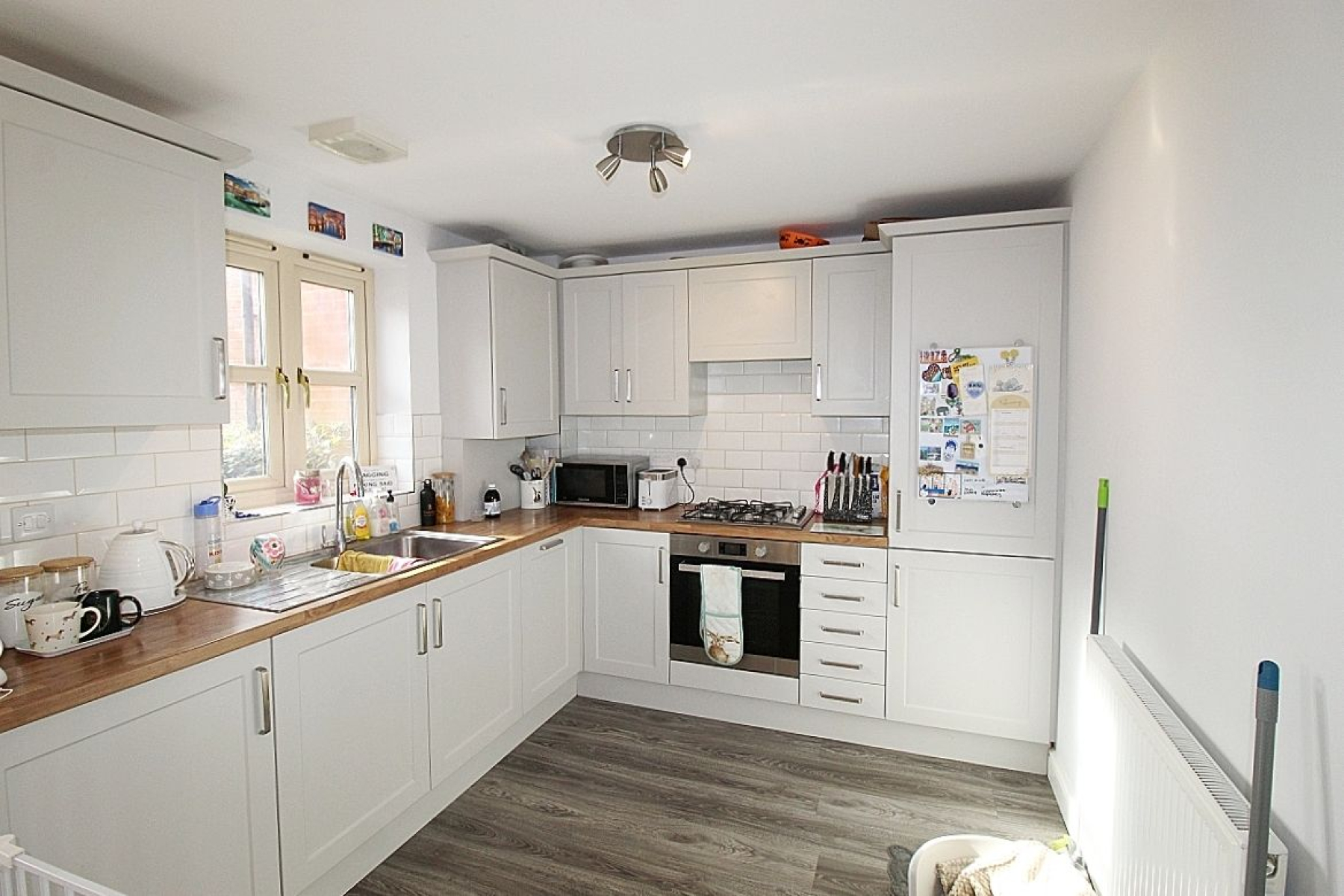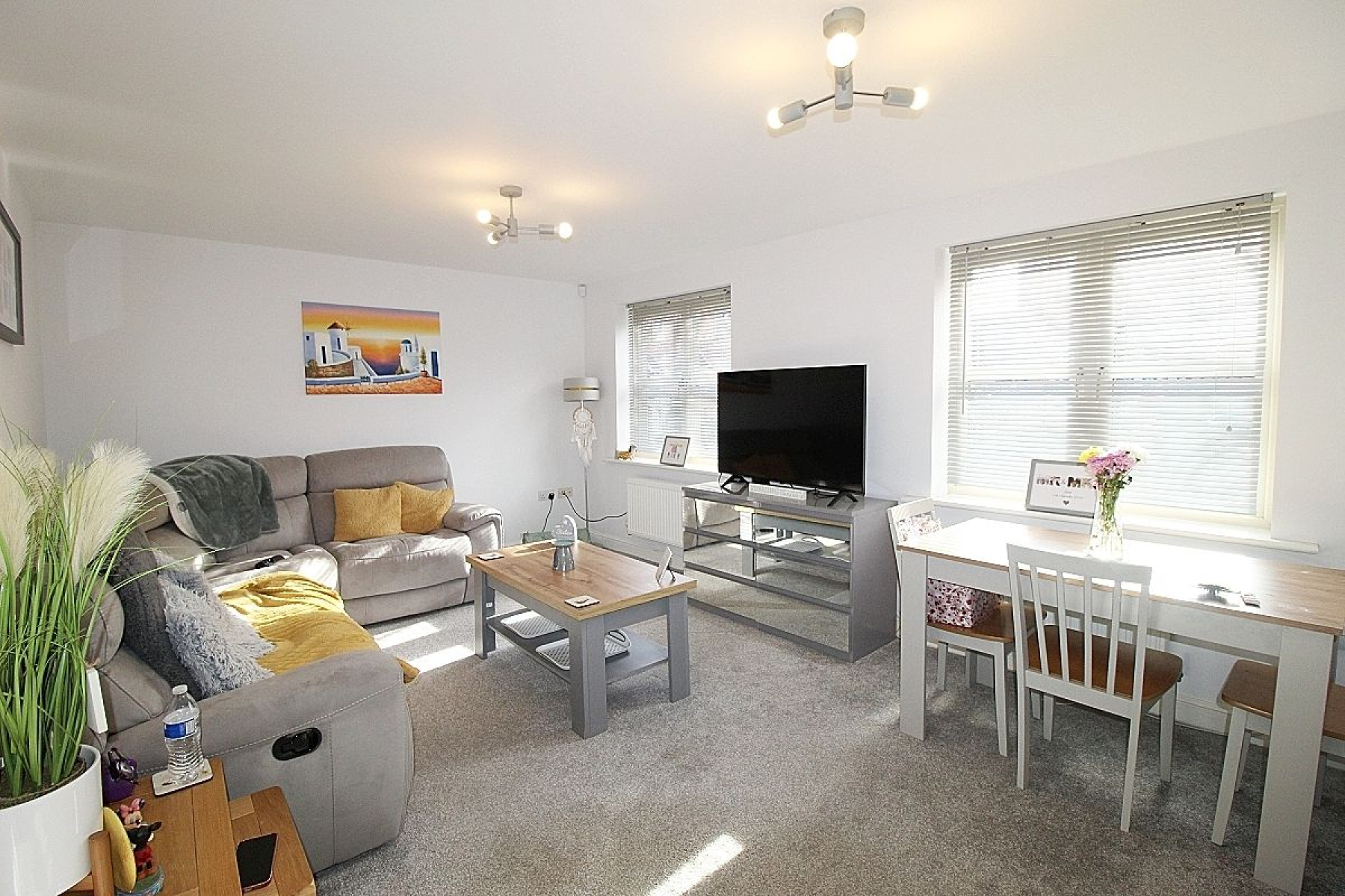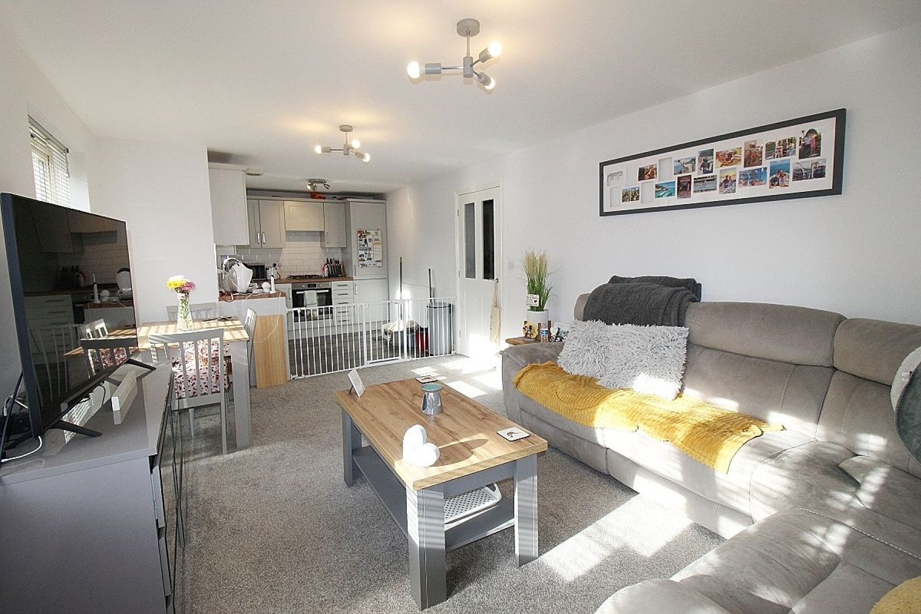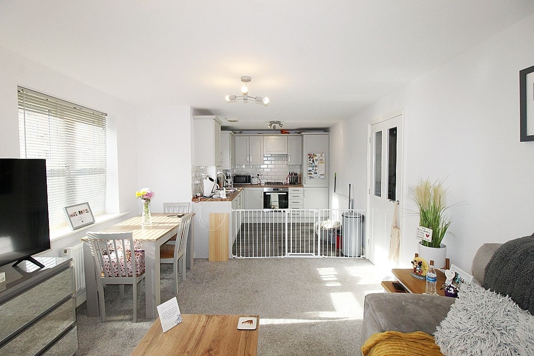 Open Plan Living Area w: 3.4m x l: 7.6m (w: 11' 2" x l: 24' 11") A modern Fitted kitchen with a range of wall and base units with under wall mood lighting, complimentary work service areas and tiled back panels. Appliances to include a built in electric oven, gas hob with extractor above, integrated fridge freezer, washing machine and dishwasher. Split laminate to carpet gives a sense of separation through to the lounge/ diner where three upvc windows allow an abundance of light to illuminate this area and two radiators add warmth.