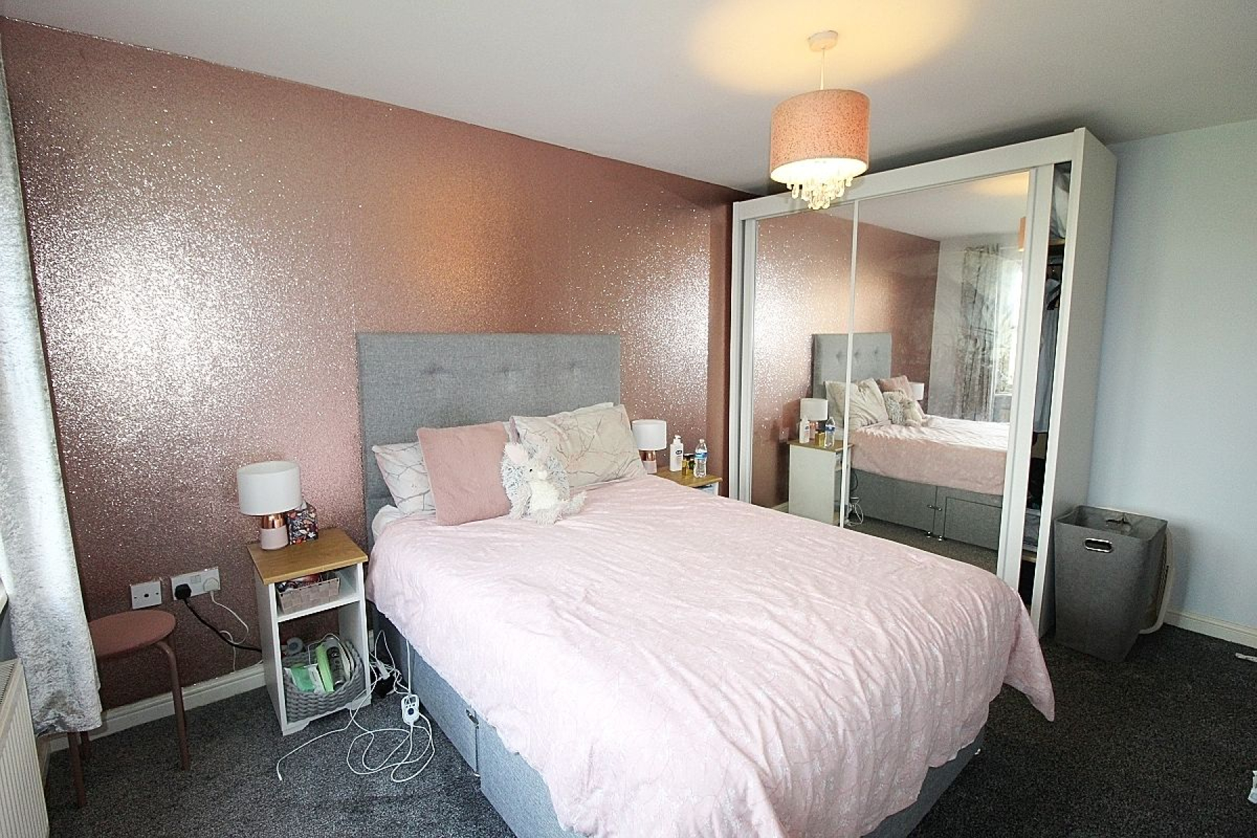 Bedroom 1 w: 4.1m x l: 2.9m (w: 13' 5" x l: 9' 6") A double bedroom with a range of sliding mirrored wardrobes, carpeted flooring, radiator and a upvc window.