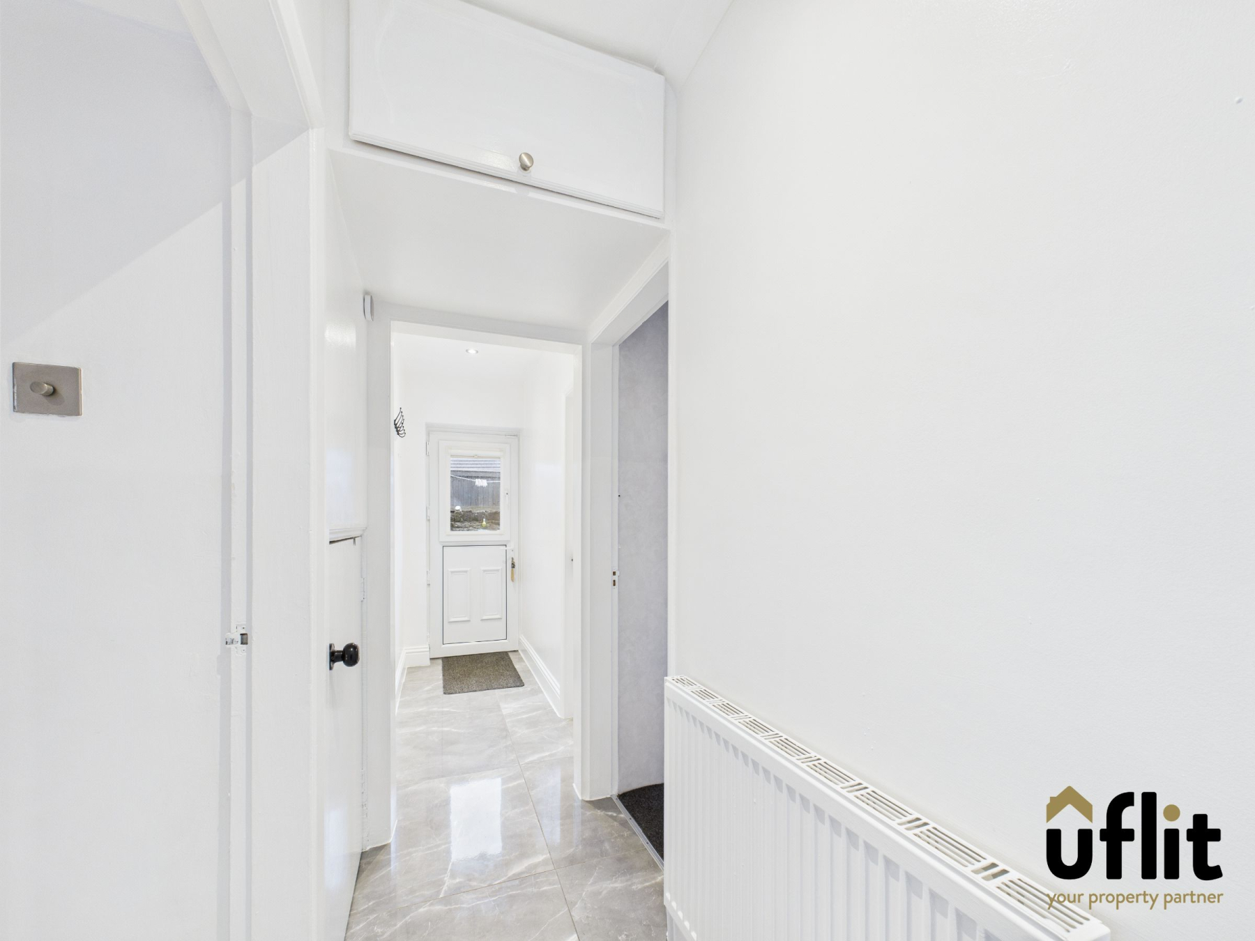 A continuation of the tiled flooring from the kitchen, with radiator and doors providing access to the lounge, bathroom and ground-floor bedroom. Useful storage cupboard and a rear door opening out to the garden.