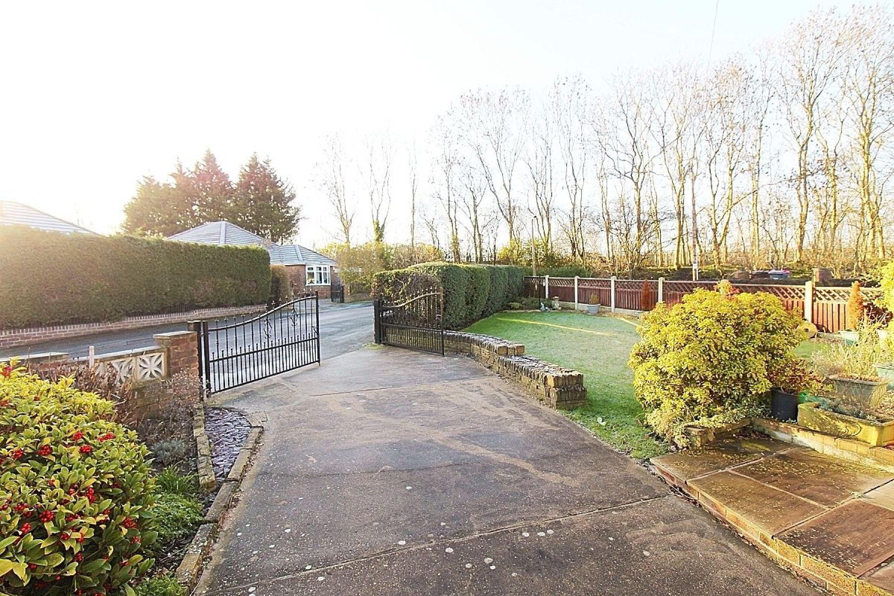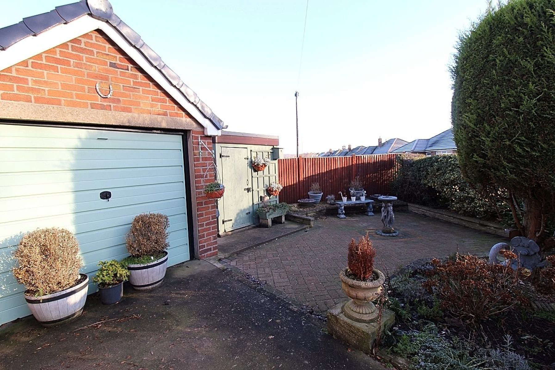The property has curb appeal sitting back from the roadside occupying a corner plot position blending peacefully to its surroundings where a delicate wall and manicured foliage protects lawned gardens and bespoke block paved seating areas, double gates open to a driveway providing ample off road parking leading to a detached brick built garage. Gated access to the rear with a further block paved patio which wraps around a lawned garden all privately enclosed.