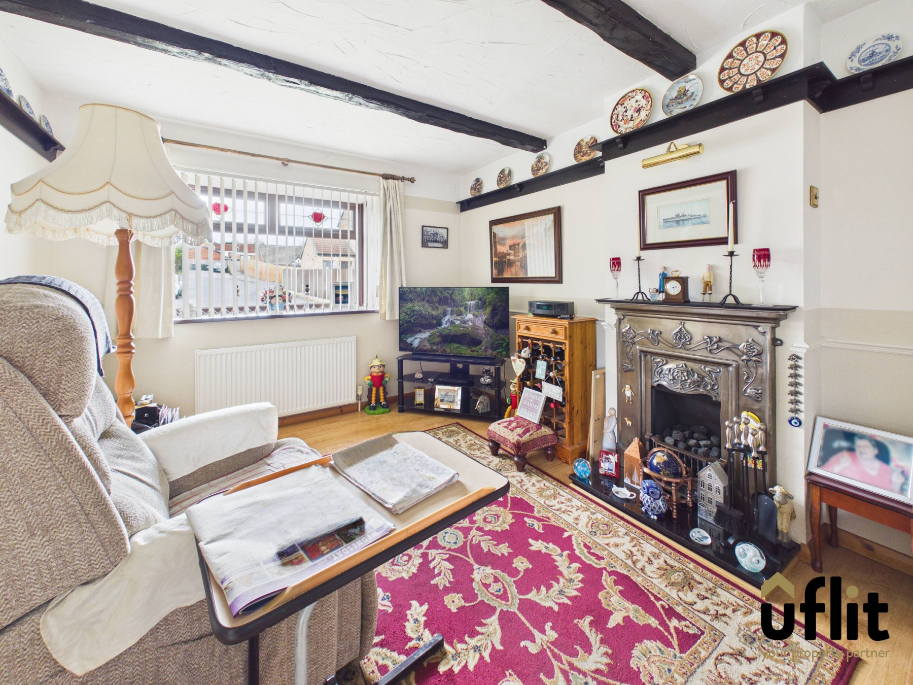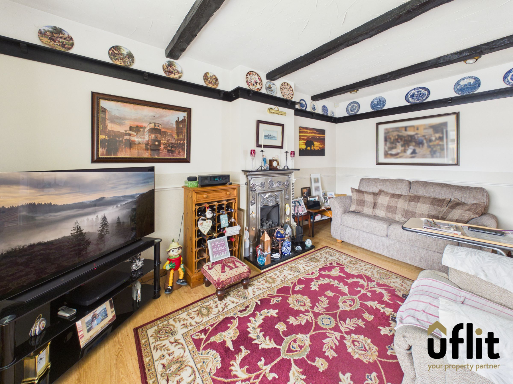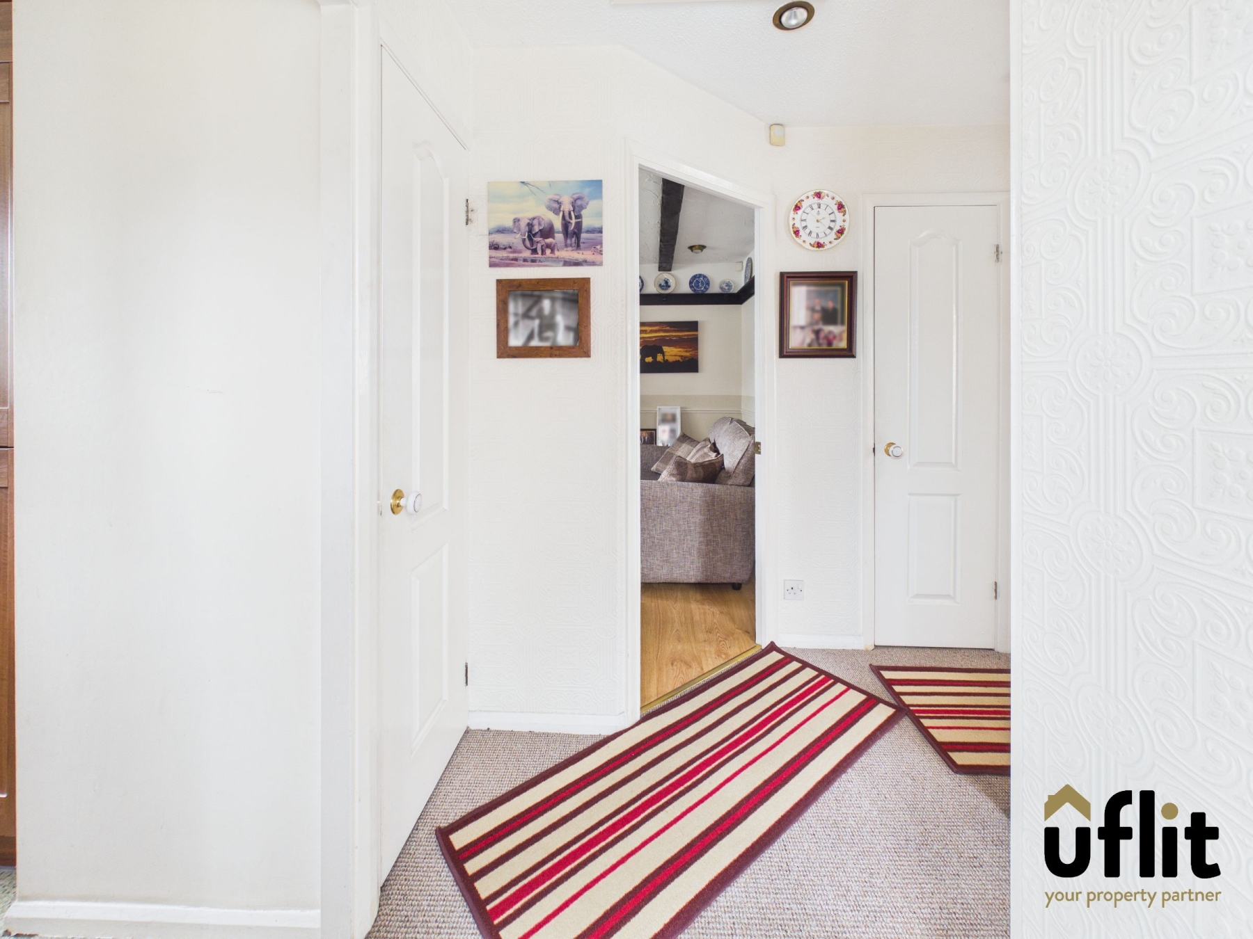 Accessed via a side entrance door, the property opens into a central hallway providing a seamless flow to all rooms. Finished with carpet flooring, the hallway creates a warm welcome and benefits from a radiator, a useful built-in storage cupboard and access to the loft which is partially boarded, offering additional storage potential.