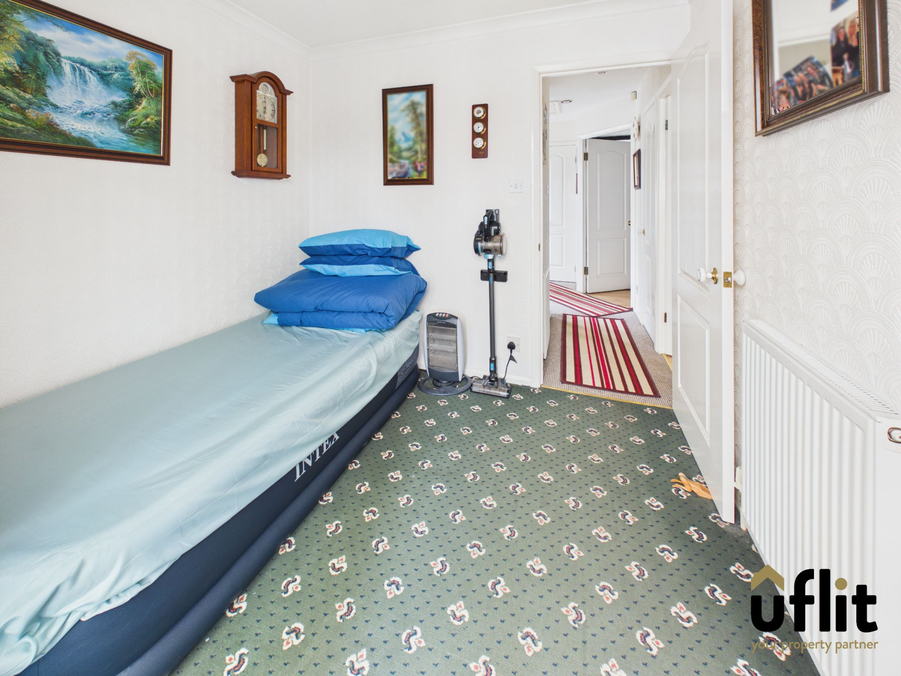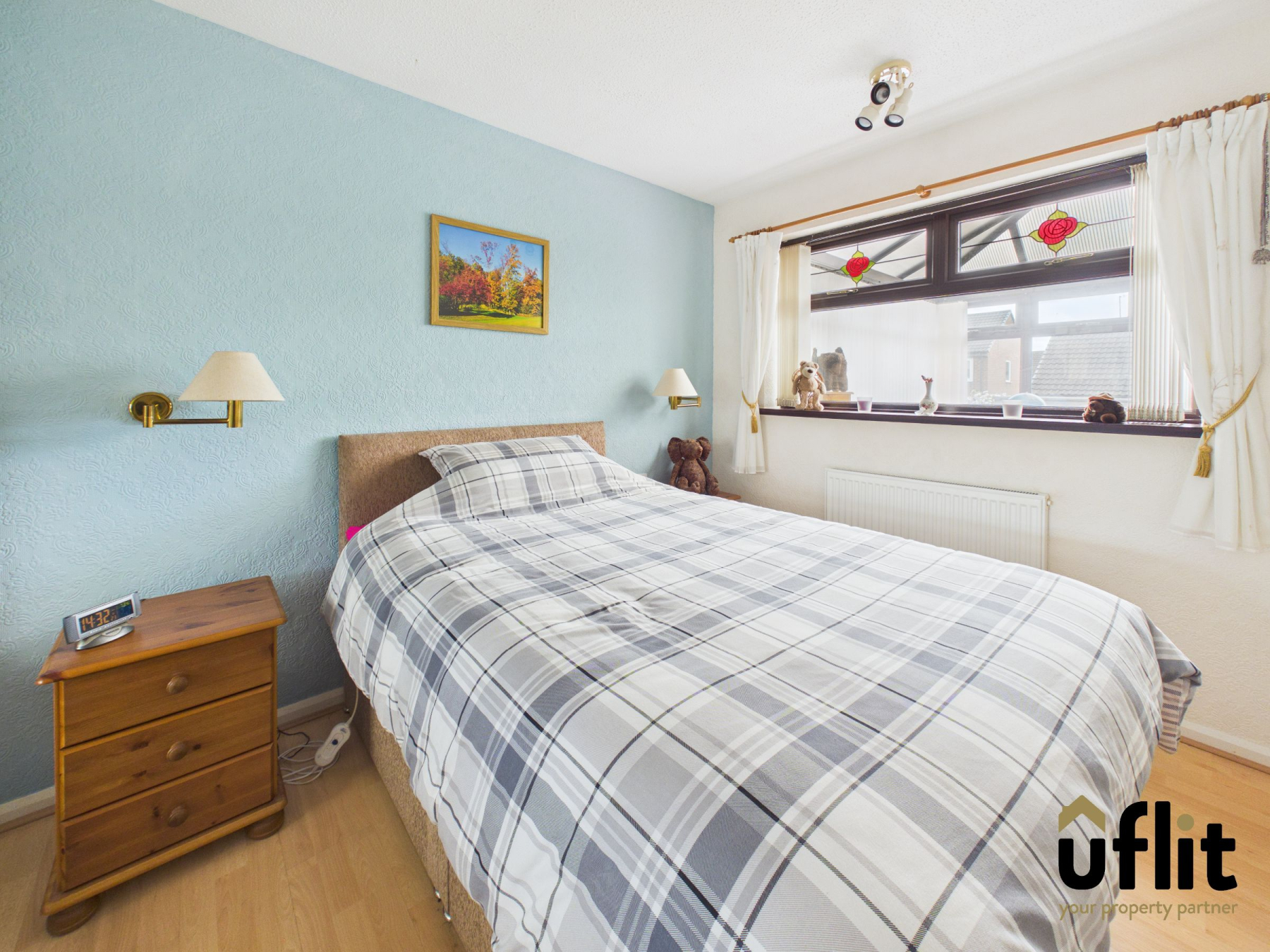 Situated to the rear of the property, the master bedroom offers a calm and relaxing retreat. The room is finished with wooden flooring and benefits from a radiator. A window overlooks the conservatory, allowing for a pleasant outlook, while fitted sliding wardrobes provide ample storage without compromising on space.
