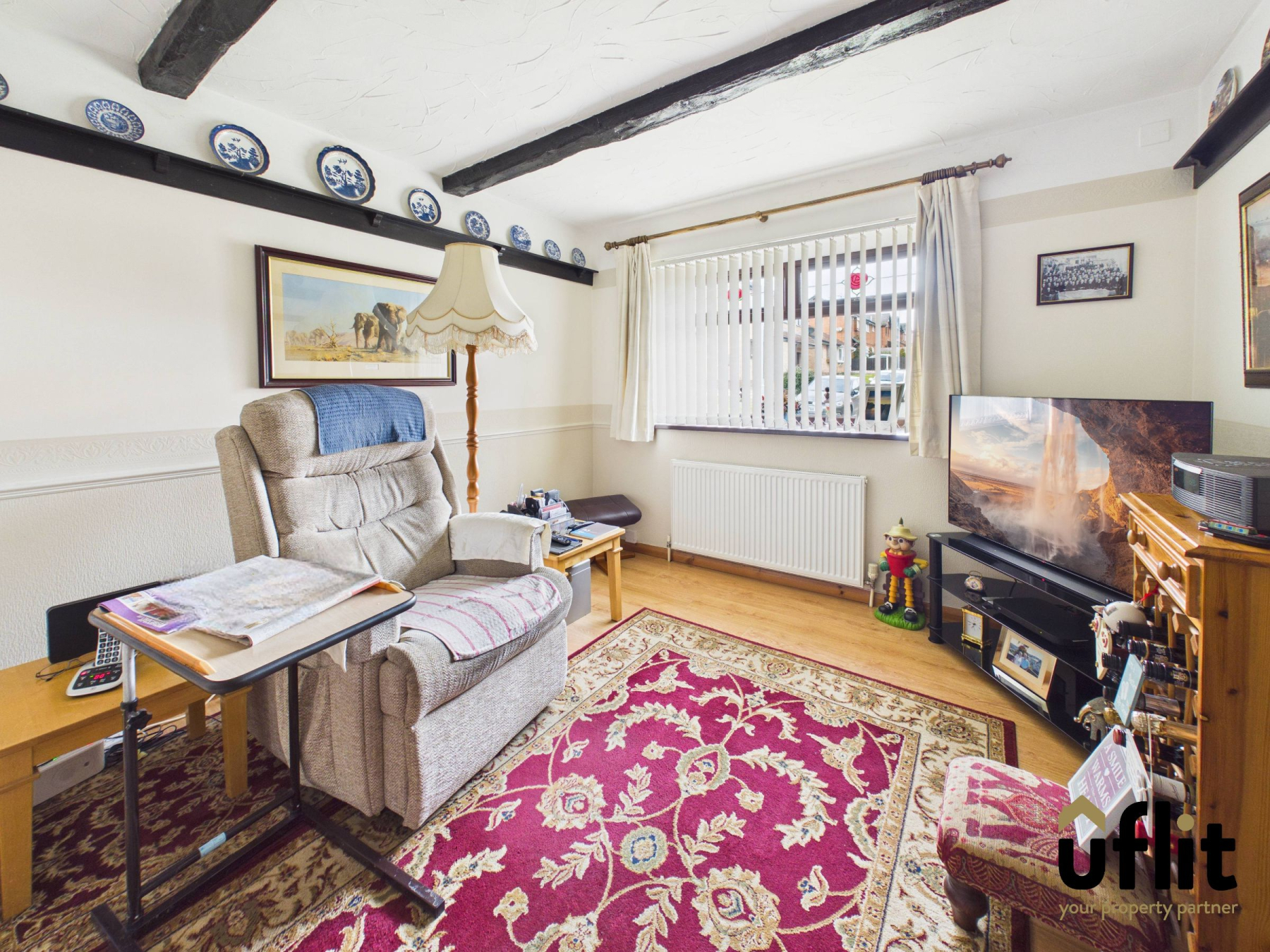 Also located at the front of the bungalow, the lounge is a comfortable and inviting living space. It features wooden laminate flooring and a radiator, with a large window allowing plenty of natural light. A feature gas fire with surround creates a focal point within the room, adding both character and a cosy atmosphere.