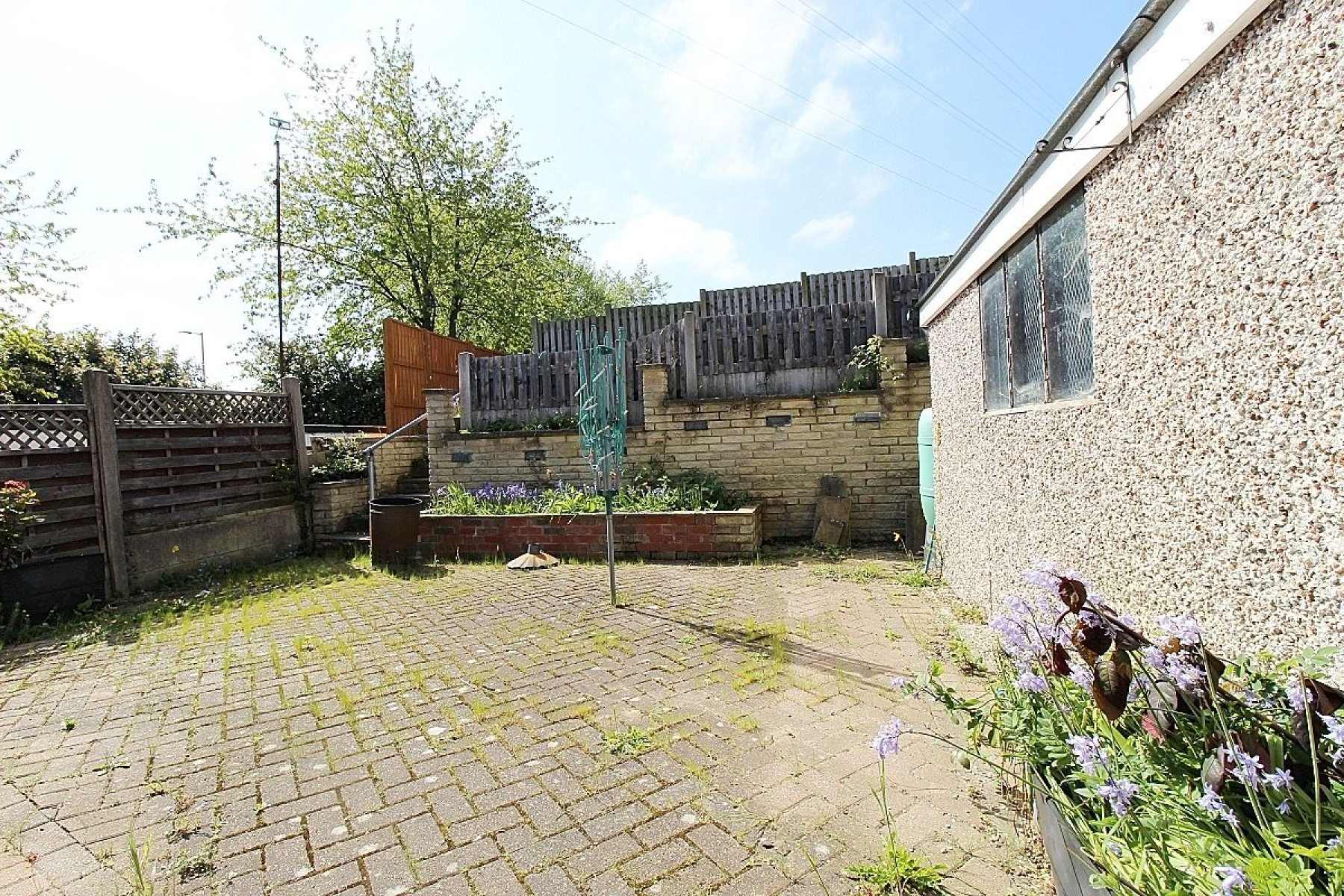 Side gated access to the private enclosed rear where the block paving seamlessly wraps around the property to form a patio area leading to a raised sun terrace with further patio.