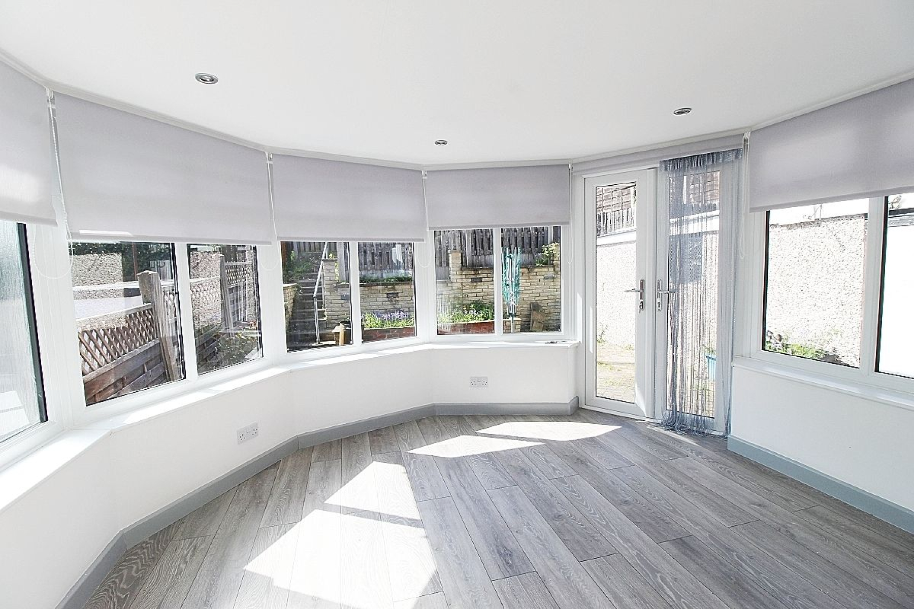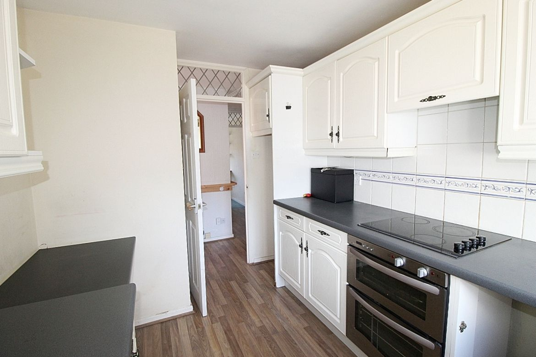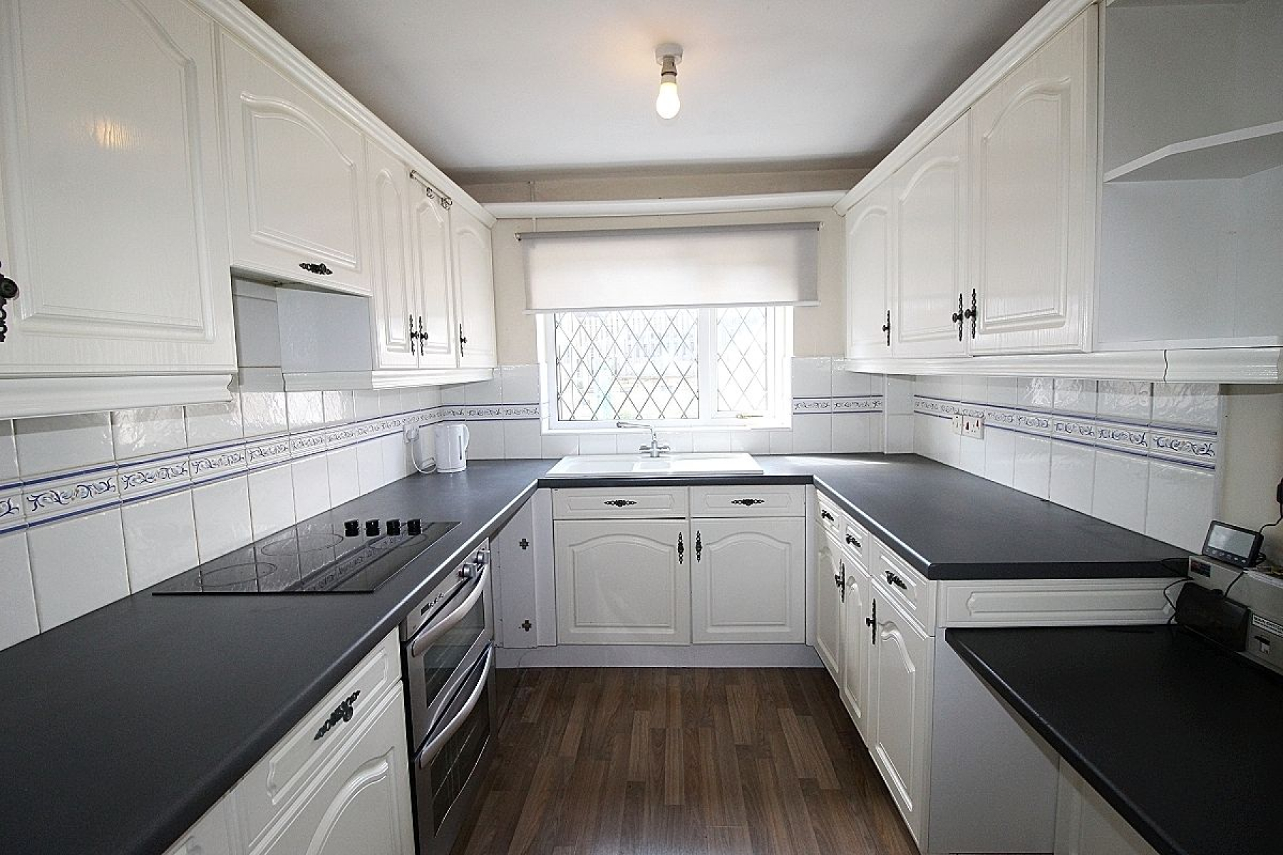 With a range of matching wall and base units, complementary worktops and tiled back panels. Appliances include a built in double oven, hob with extractor above and additional space for further appliances. Finished with laminate flooring, a front-facing upvc window and a radiator.