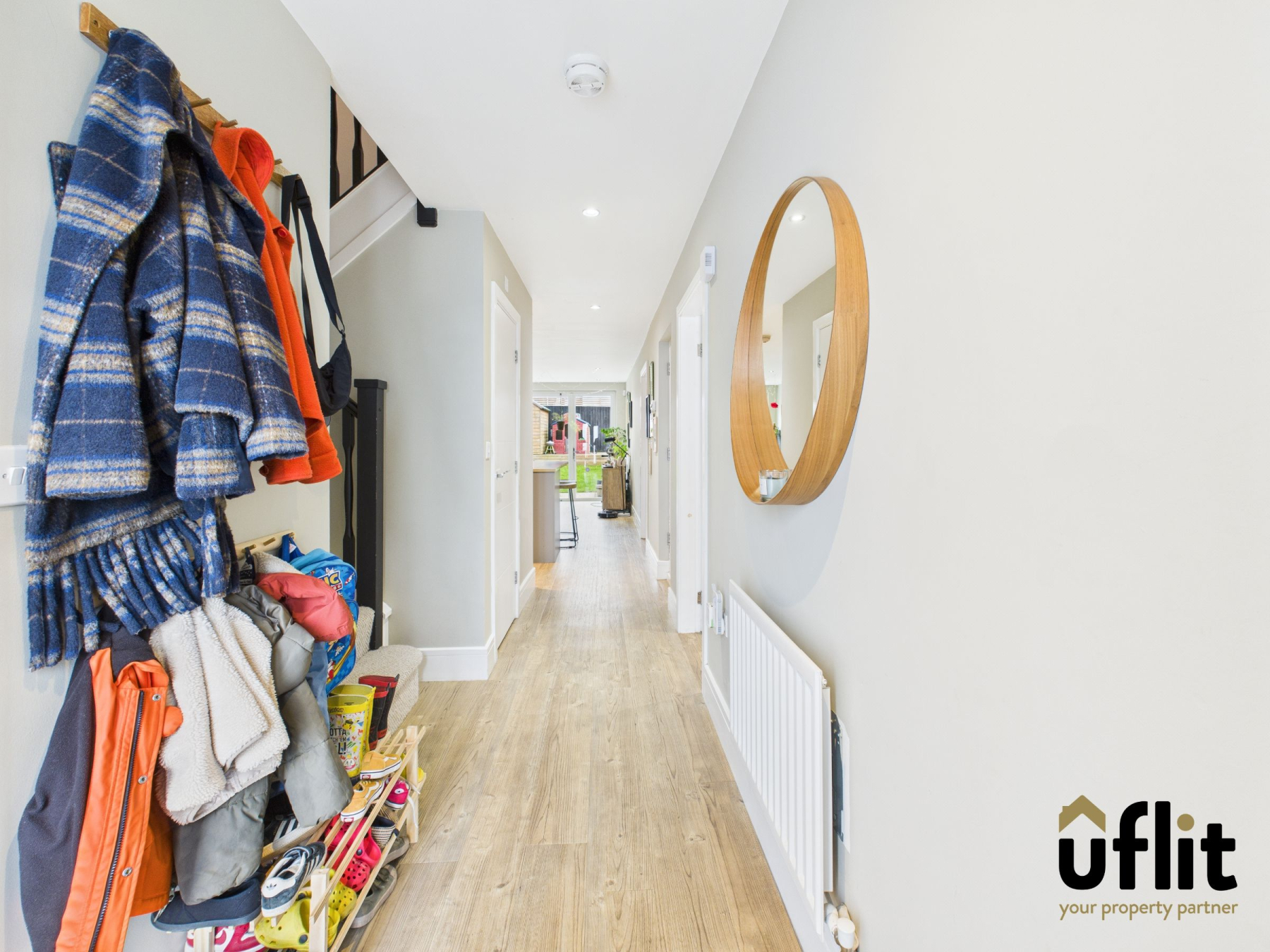 Step through the stylish composite entrance door with side panel into a bright and welcoming hallway, where high-quality Amtico flooring flows seamlessly throughout the ground floor. This elegant space sets the tone for the rest of the home offering access to all principal ground floor rooms and under-stairs storage.
