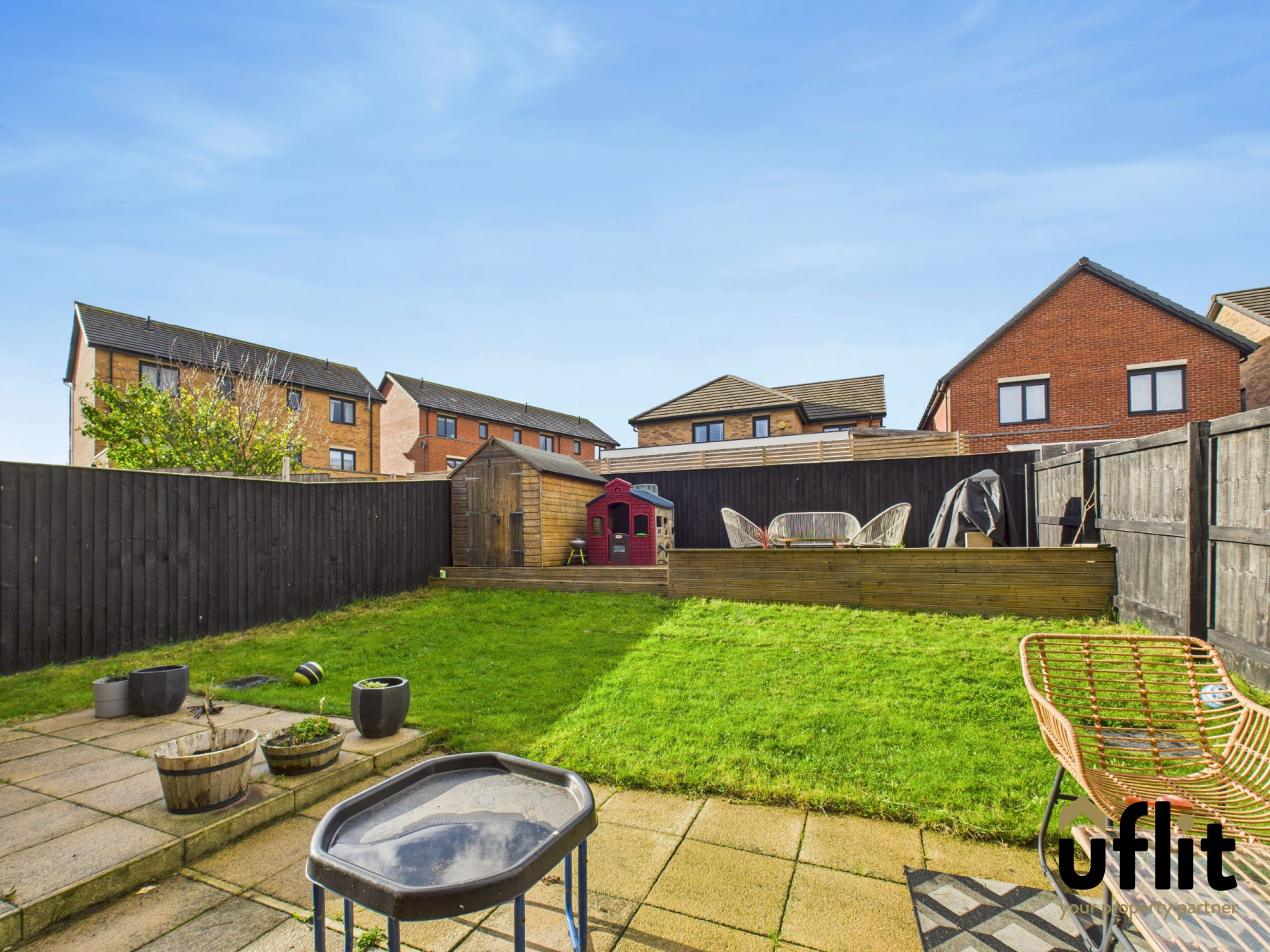 Outside the rear garden is a real gem. Thoughtfully tiered across two levels it offers a paved patio ideal for entertaining, a central lawned section for play and an elevated decking area with raised beds perfect for evening relaxation or al fresco dining.