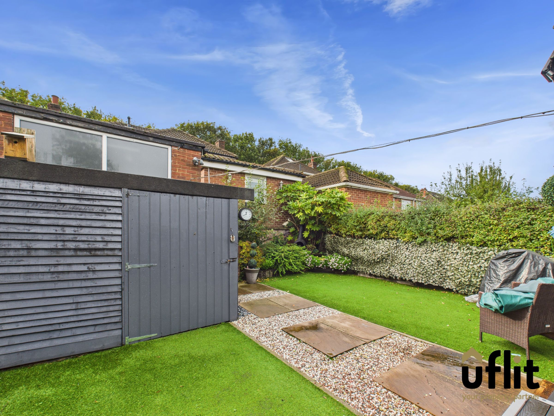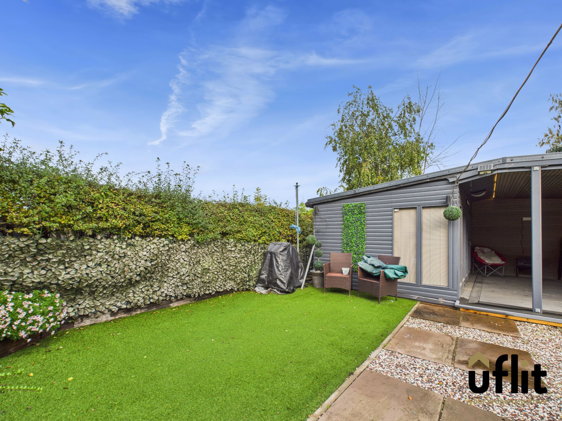 To the rear the property boasts a beautifully maintained fully enclosed garden offering a private outdoor haven. The space features a large garage, low-maintenance AstroTurf lawn, decorative shrub borders and a stylish composite terrace area perfect for entertaining. Completing this superb outdoor space is a fantastic mancave/bar, fully equipped for year-round enjoyment.