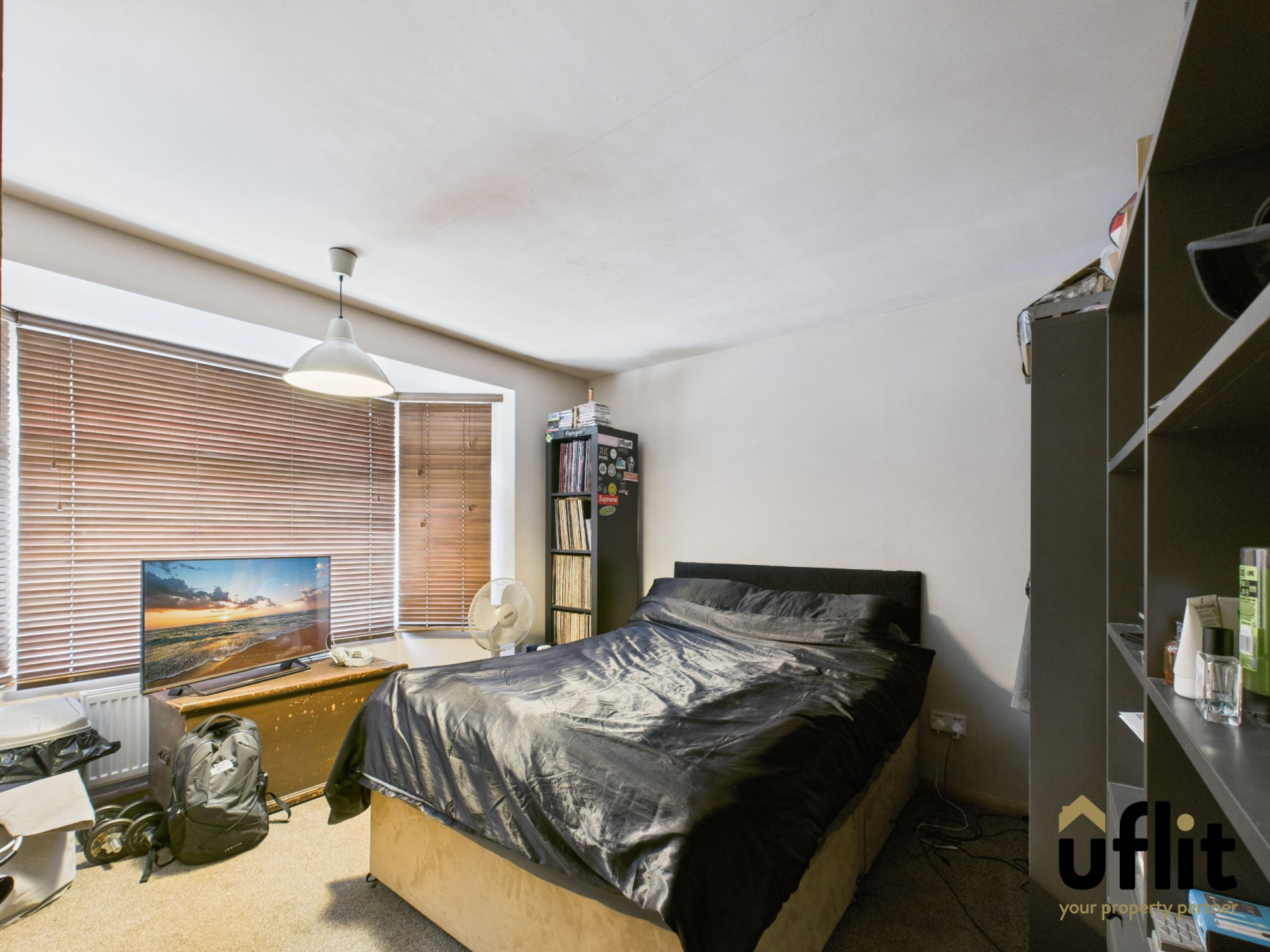 A spacious front facing double bedroom with a stunning bay window allowing natural light to flood the room. The space is carpeted and features a radiator offering both style and comfort.