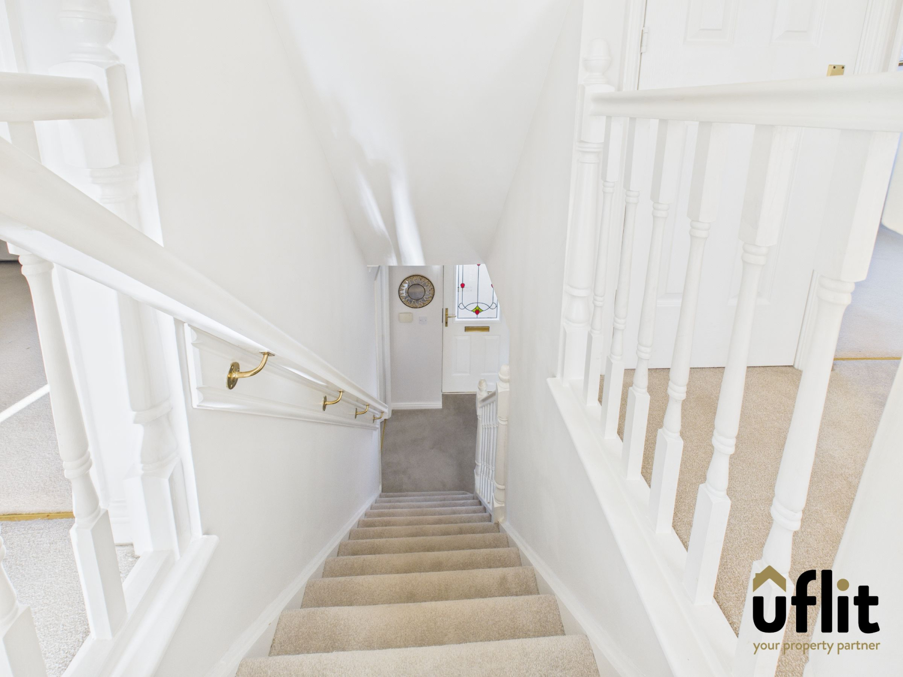 The first-floor landing is carpeted and features white spindle balustrades. Access is provided to the fully boarded loft via a pull-down ladder, offering valuable additional storage space.