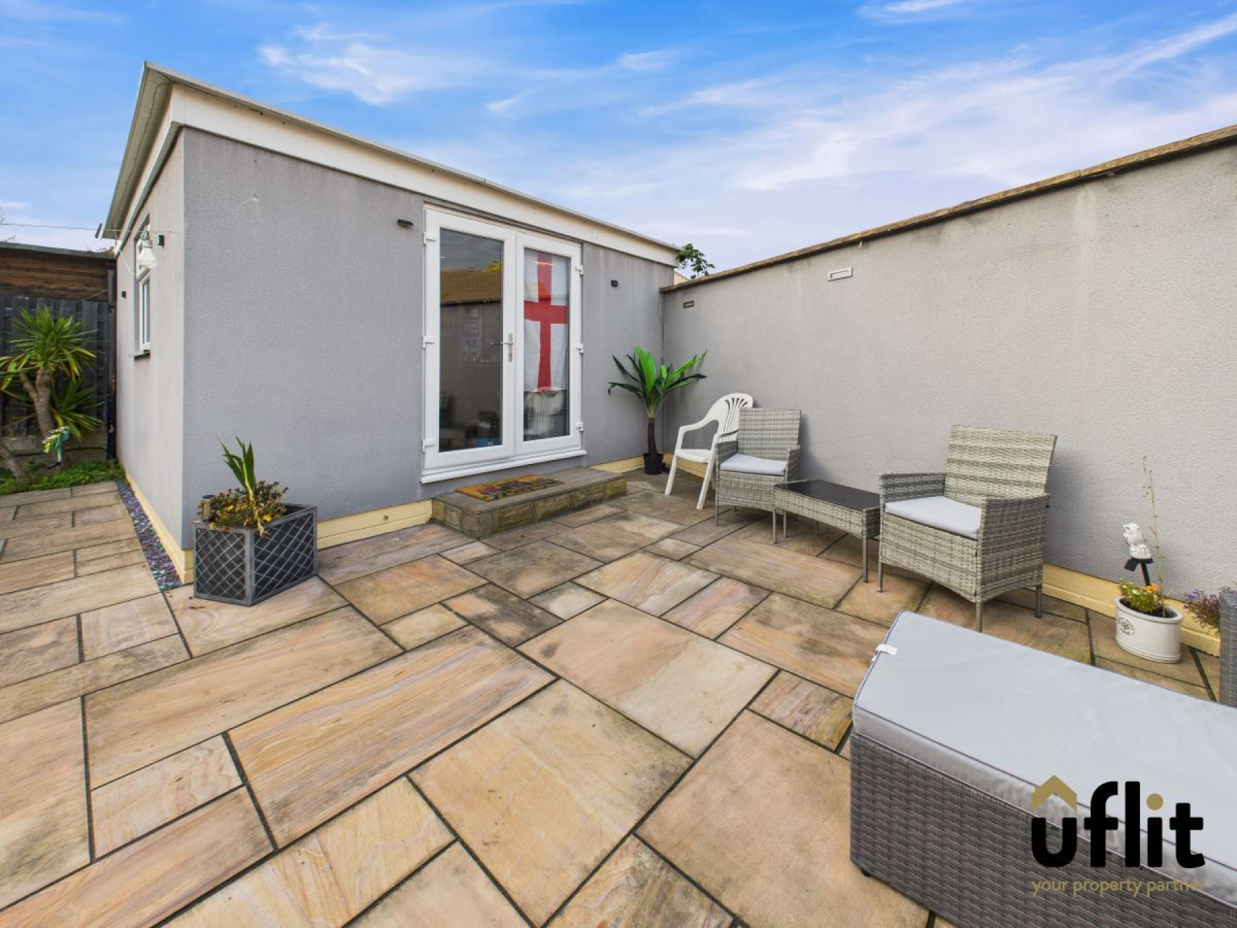 A standout feature, this fully rendered outbuilding offers power, lighting and all the space needed for your own home bar and entertainment zone. With laminate flooring, double doors to the patio and a fully working bar with pump, this space is ideal for parties, relaxing, or even converting to a home office or studio.