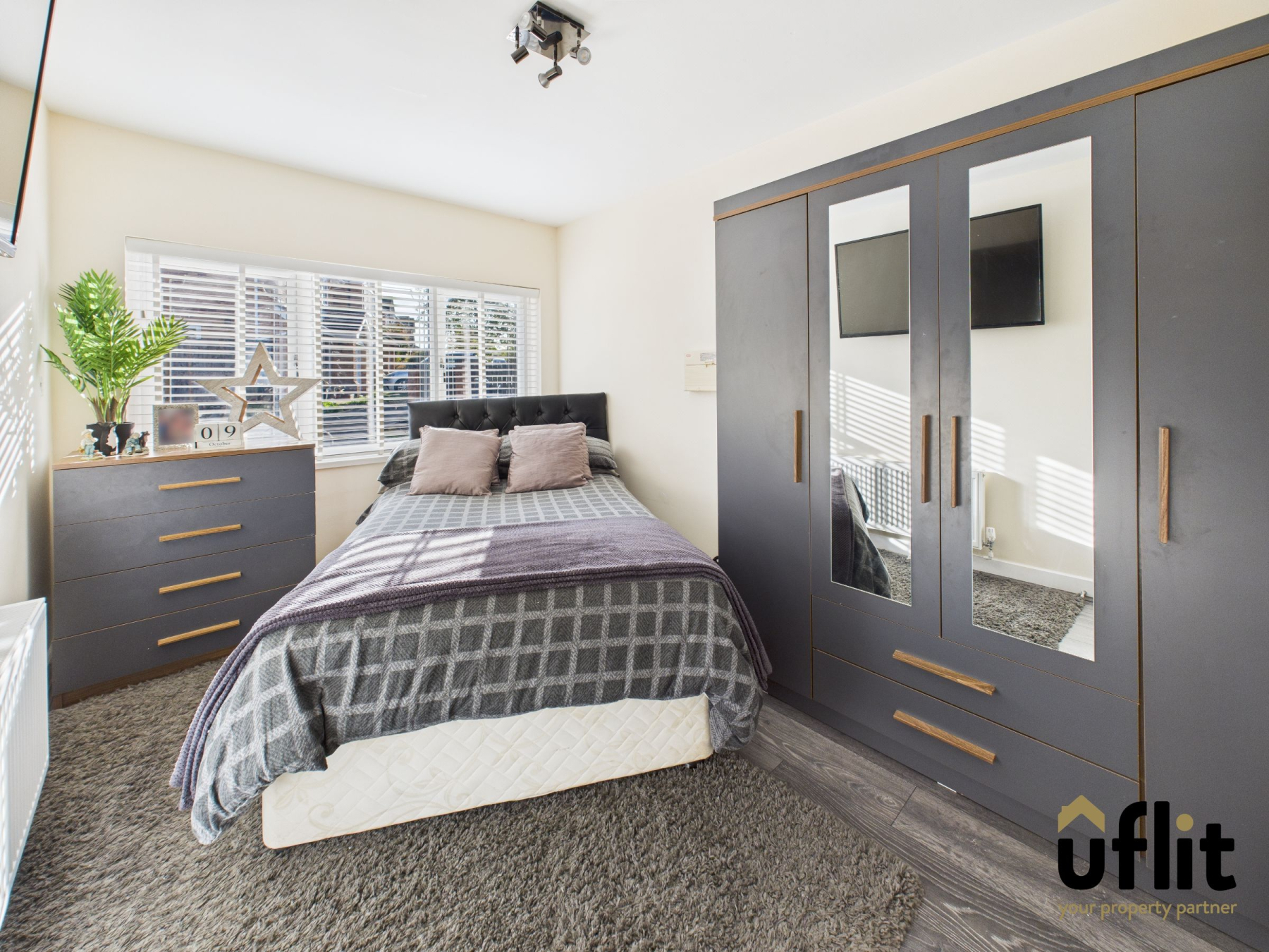 Spacious double with laminate flooring, radiator, front-facing window and fitted wardrobes.