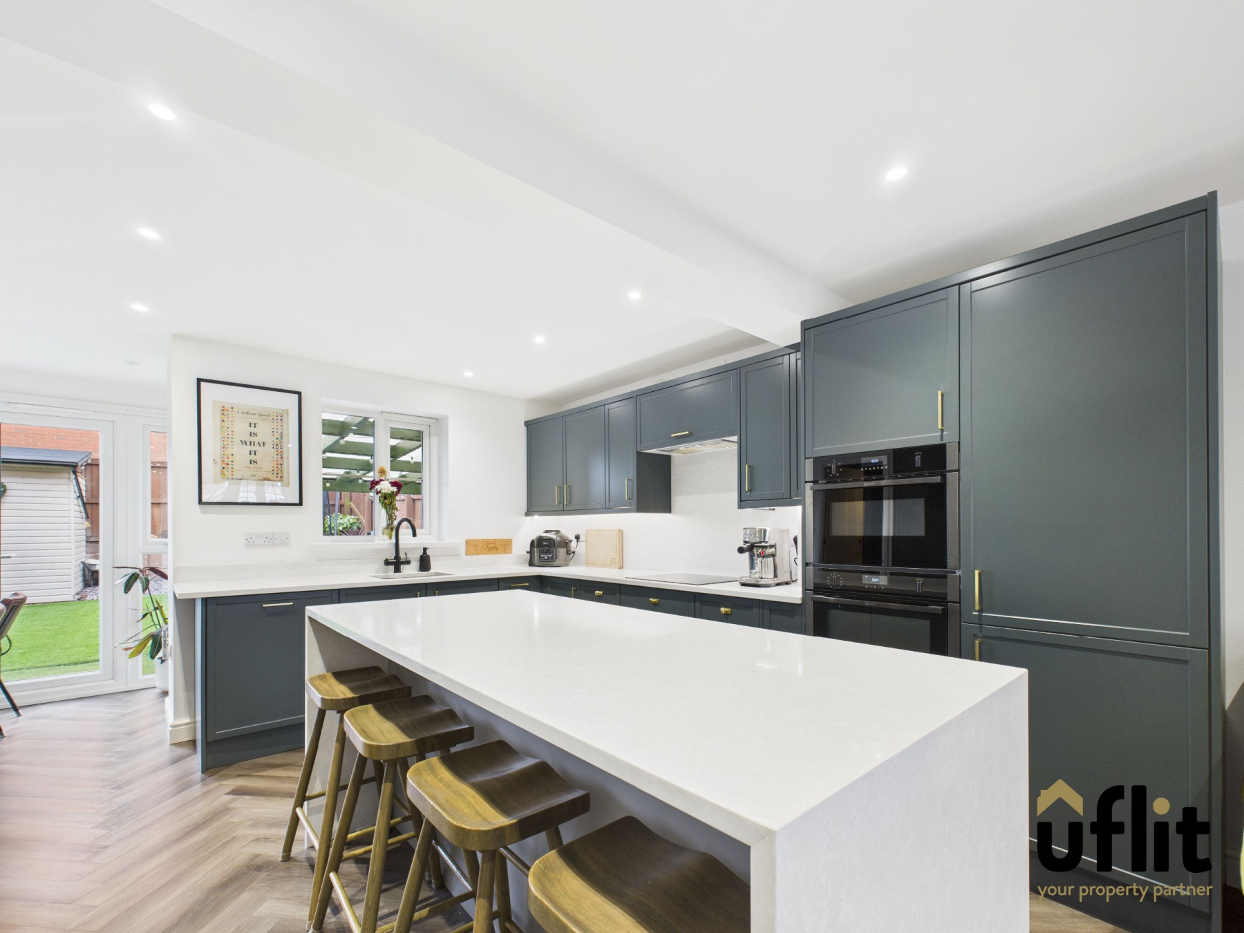 The heart of the home is the stunning open-plan kitchen, living and dining area, a truly sociable space ideal for both everyday family living and entertaining. Finished with luxury LVT flooring, bespoke quartz worktops and a large central island, the kitchen combines both functionality and style. High-end integrated Neff appliances, generous storage solutions and French doors opening onto the rear garden elevate this space to an exceptional standard.