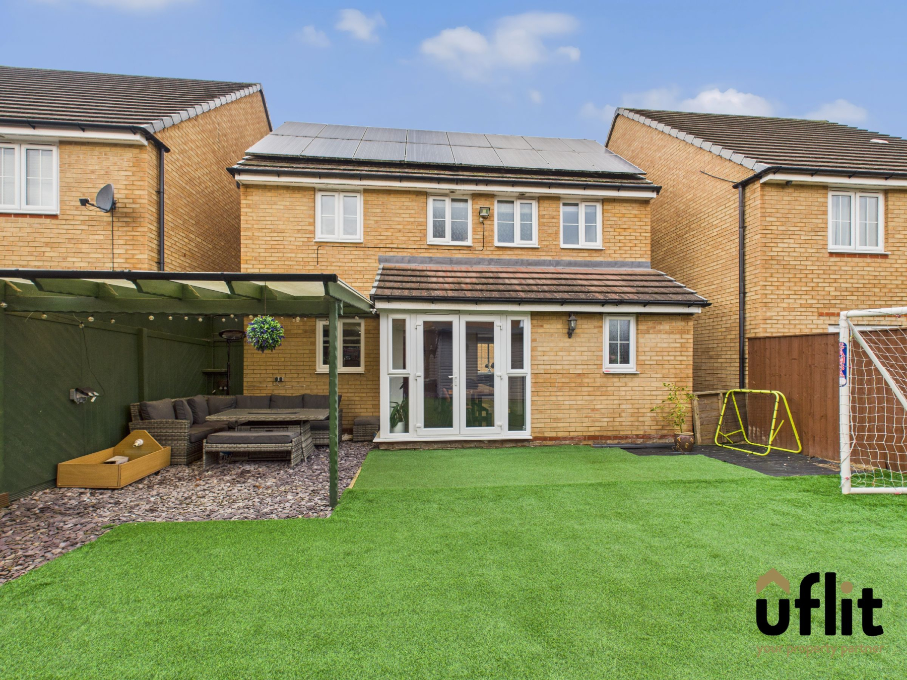Externally, the rear garden has been thoughtfully landscaped to create a low-maintenance yet attractive outdoor space, featuring Astro turf, slate pebble detailing, raised beds and a sheltered seating area, perfect for relaxing or entertaining. Fully enclosed and private, the garden also benefits from gated access to the side of the property.