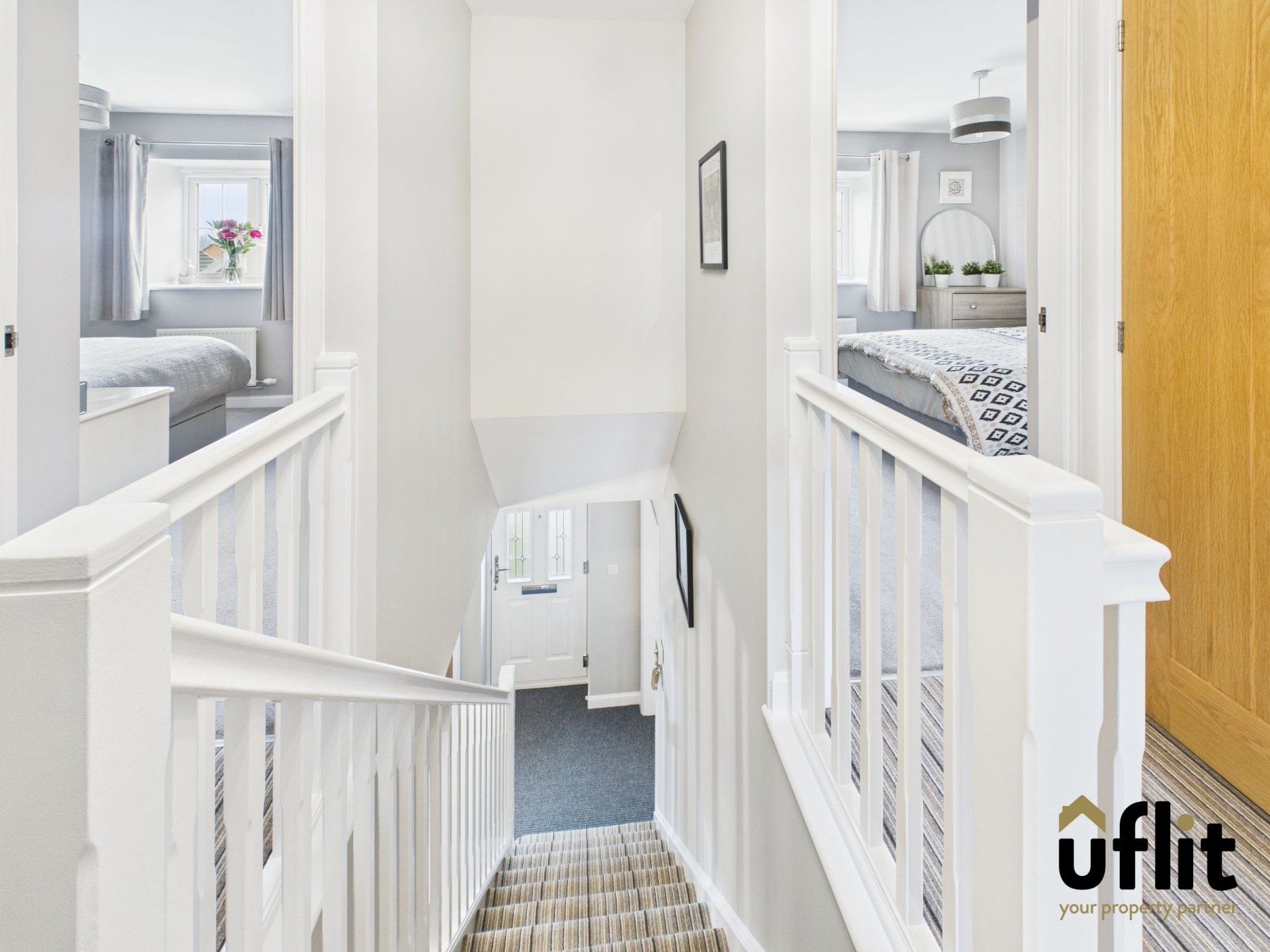 The first floor landing is accessed via carpeted stairs and benefits from a radiator. The loft hatch is accessible from the landing and features a ladder, with the loft being boarded and fitted with power, offering excellent additional storage potential.