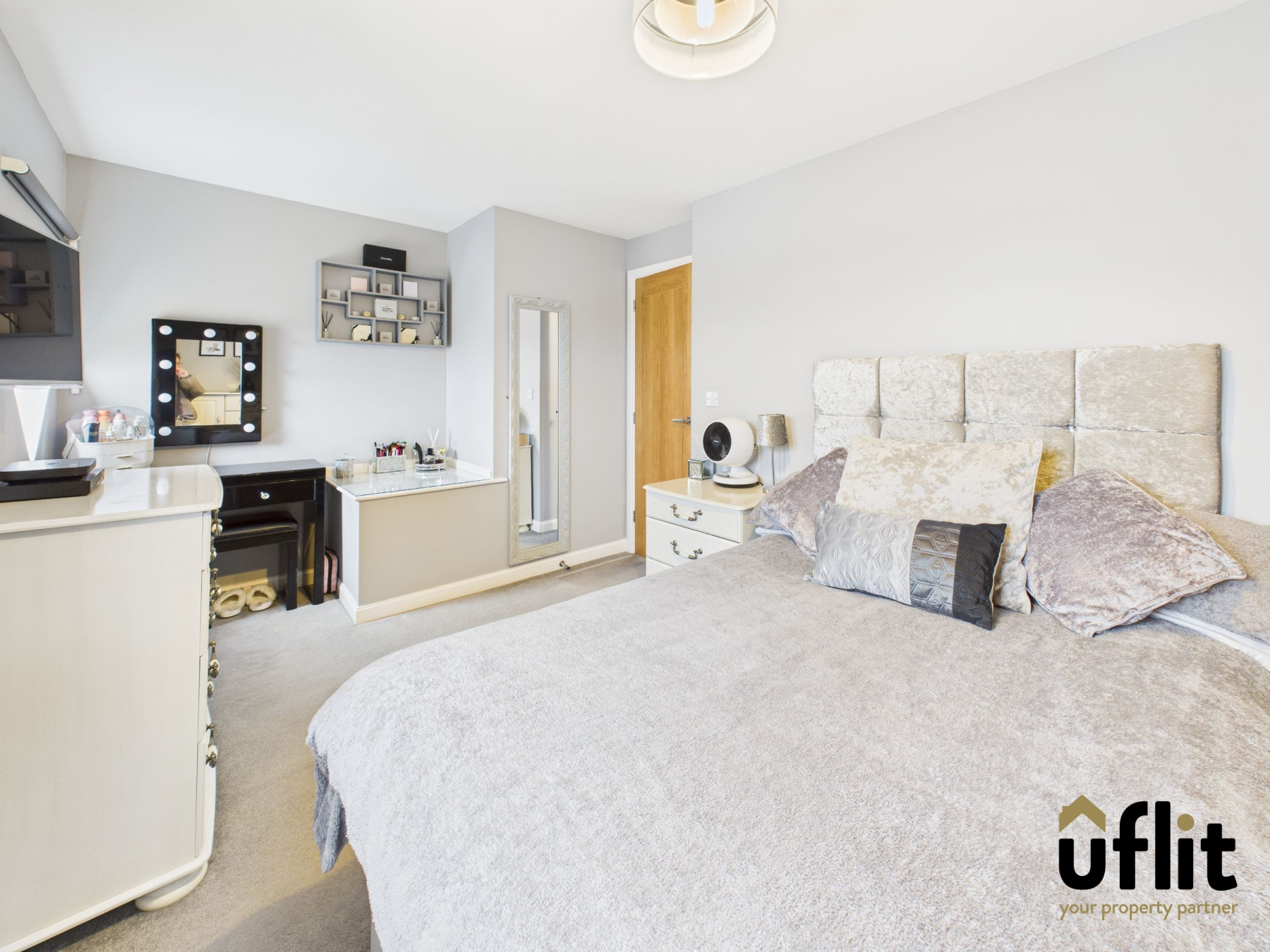 The master bedroom is a generous double room overlooking the rear garden. It is carpeted and benefits from a radiator and fitted triple wardrobe, providing ample storage. The room offers a calm and relaxing retreat and leads directly into the ensuite.