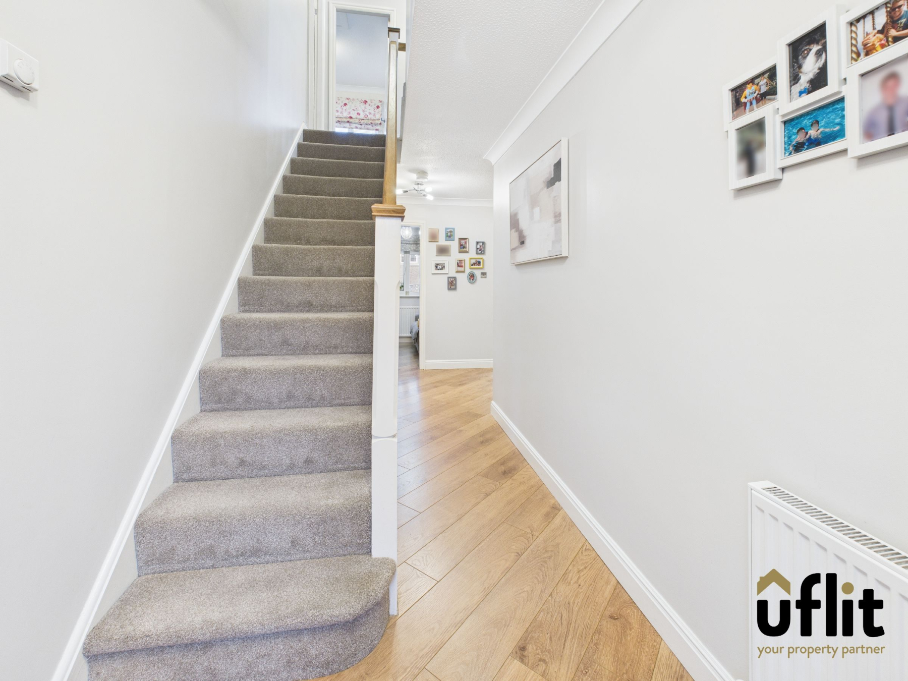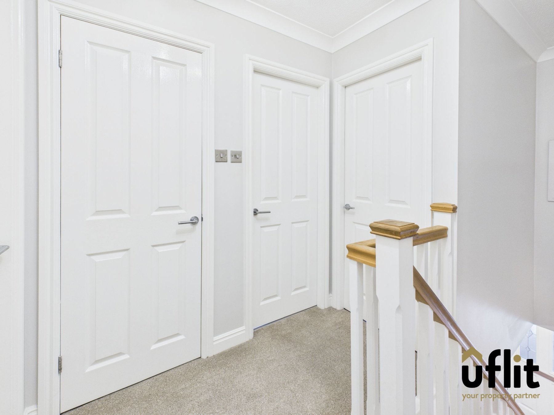 The carpeted landing provides access to all four bedrooms, the family bathroom and an airing cupboard, creating a bright and practical central space.