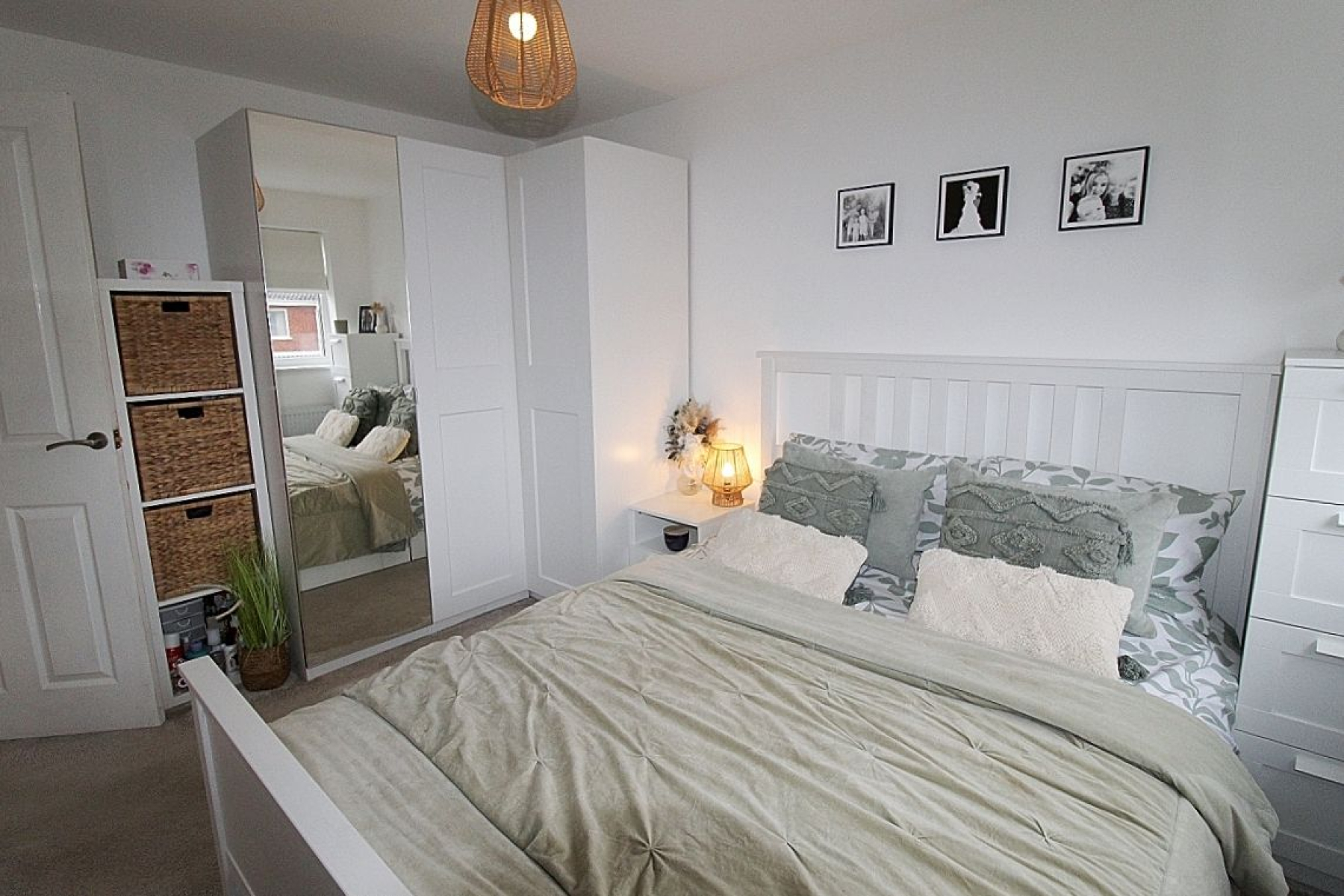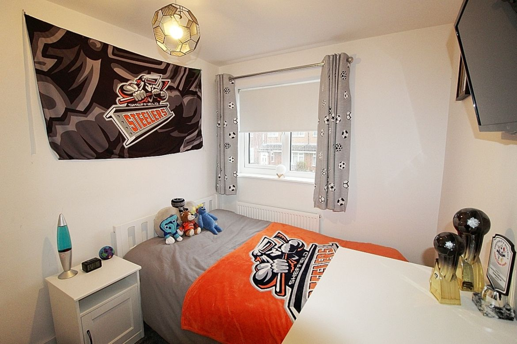 A further ample sized bedroom with radiator, carpeted flooring and a front facing upvc window.