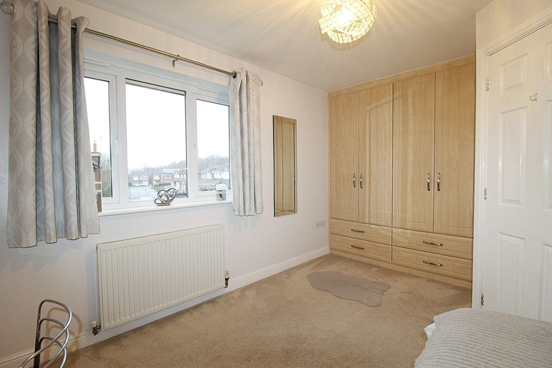 A further double bedroom with a range of modern fitted wardrobes, rear facing upvc window, radiator and carpeted flooring.