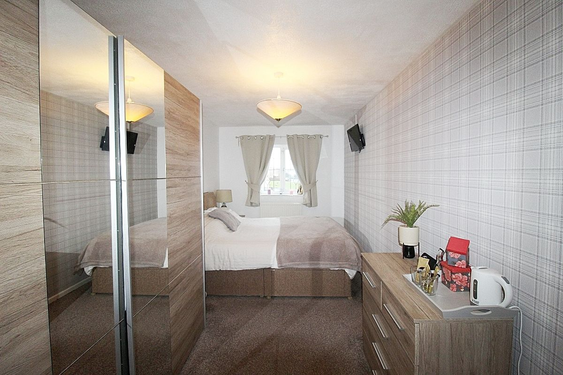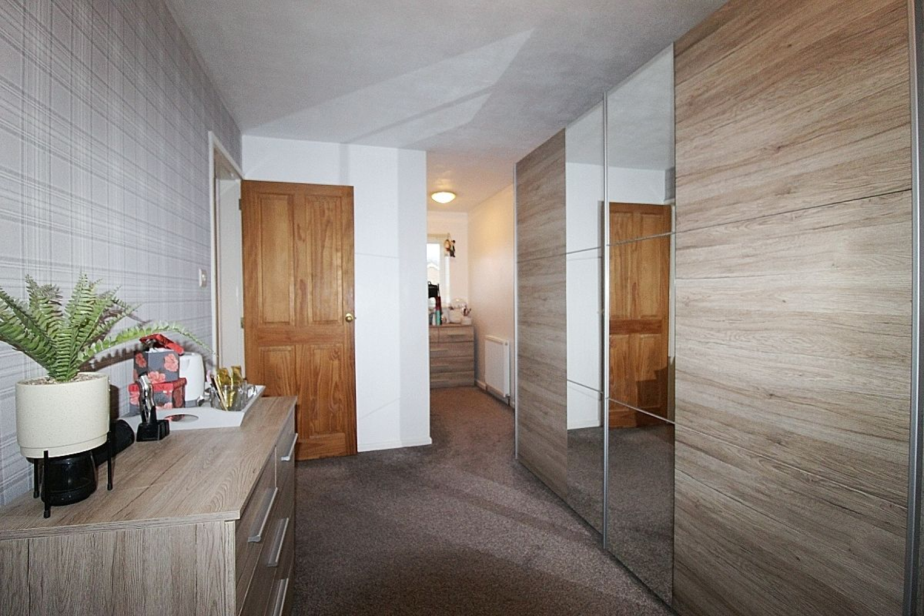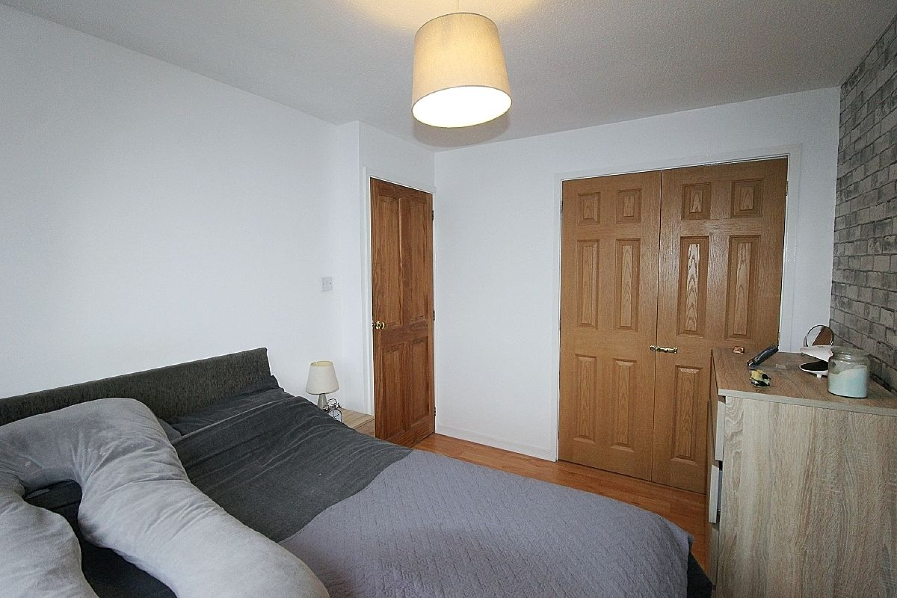 A further double bedroom with a range of built in wardrobes, rear facing upvc window, radiator and laminate flooring.