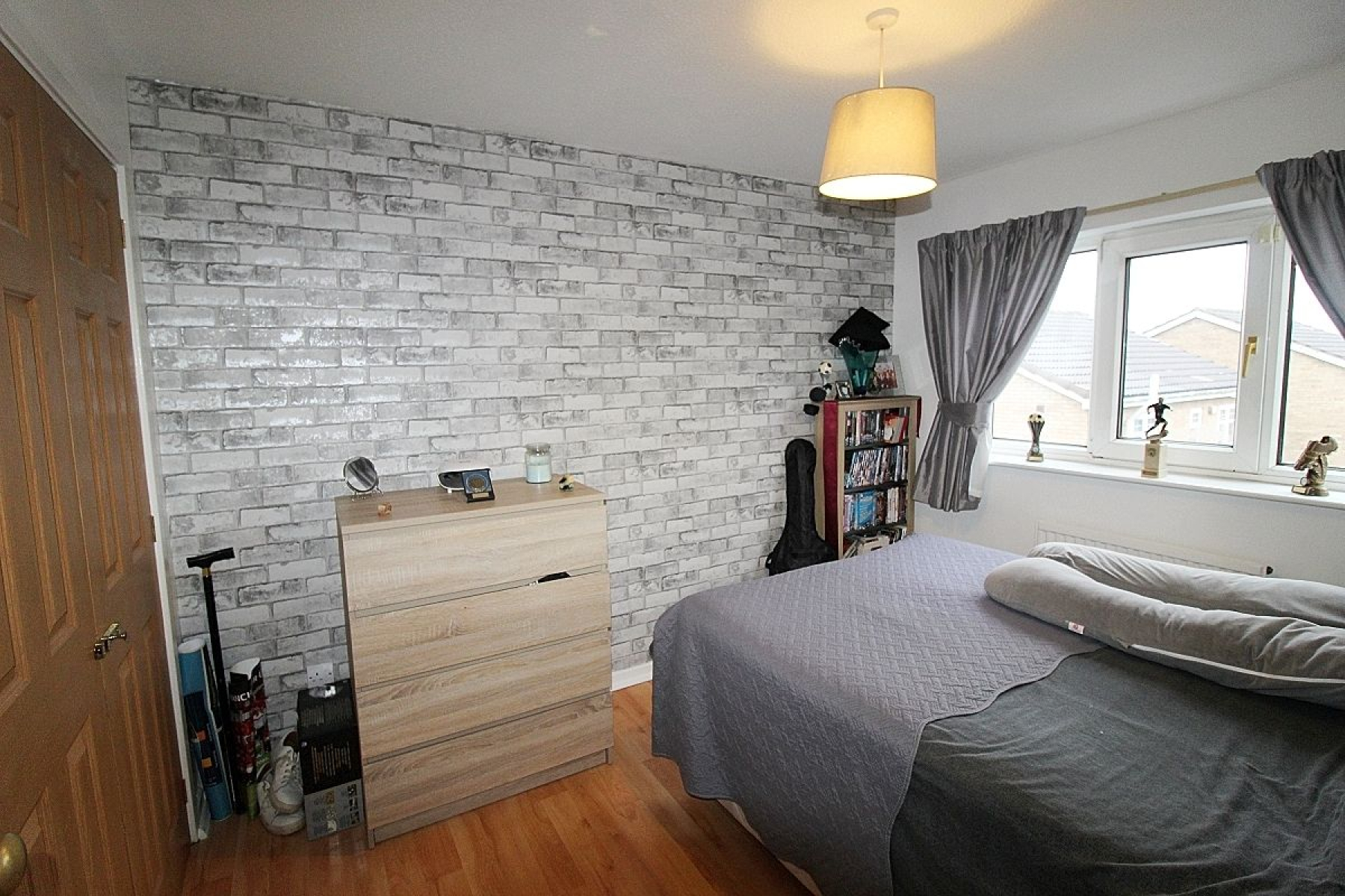 A further double bedroom with laminate flooring, radiator and a front facing upvc window.