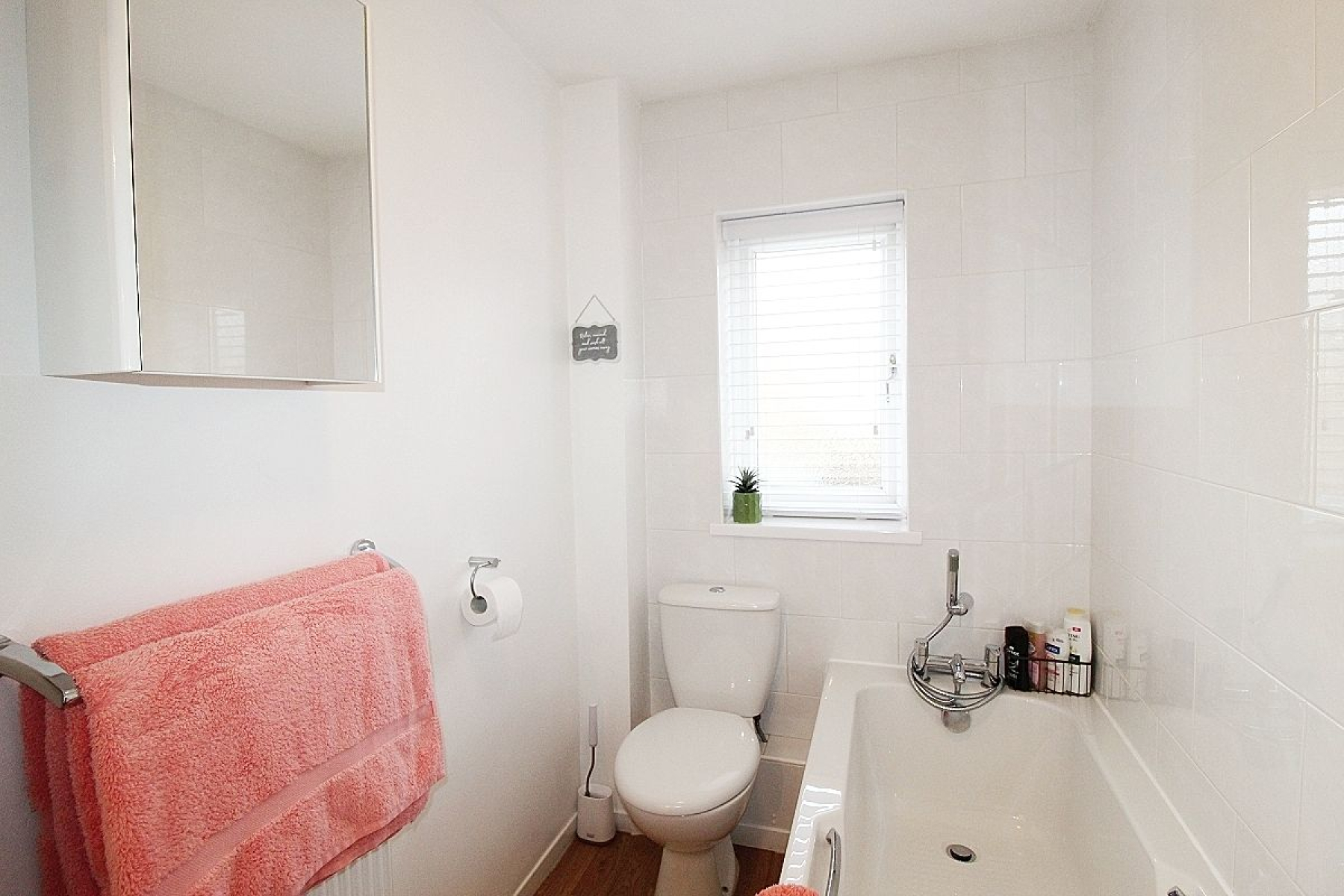 Family Bathroom w: 1.6m x l: 2.6m (w: 5' 3" x l: 8' 6") A beautifully presented bathroom comprising of a panelled bath with mixer tap shower, low level wc and wash hand basin. Partially tiled walls and contrasting vinyl flooring, radiator and a rear facing upvc window.