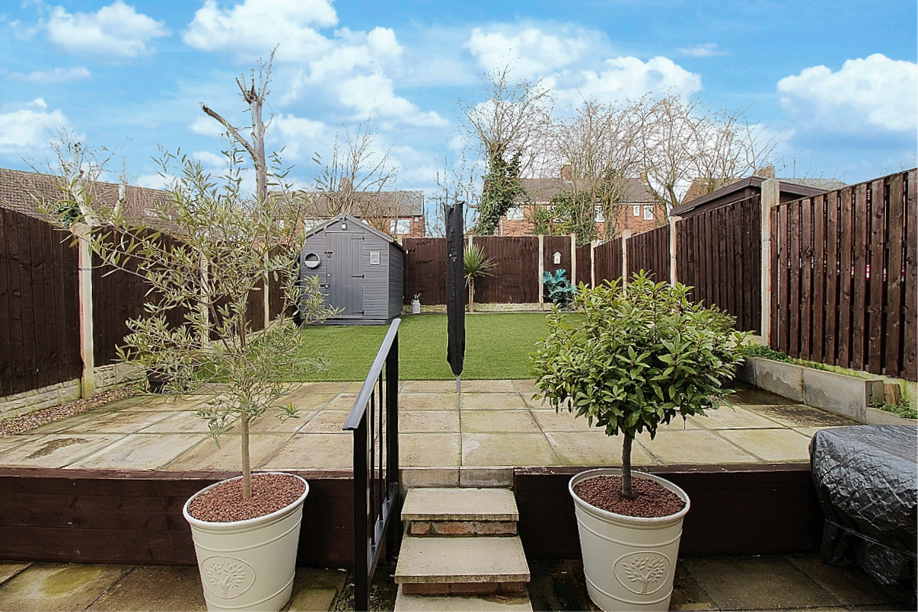 Outside The property really has curb appeal with an attractive enclosed frontage and a driveway provides ample off-road parking. Side gated access to the rear where a beautiful landscaped garden awaits, a paved patio seamlessly wraps around the property with a delicately tiered sun terrace which in turn meets a further low maintenance Astro turf garden creating a stunning outdoor entertaining area all enclosed with fencing and a garden shed.
