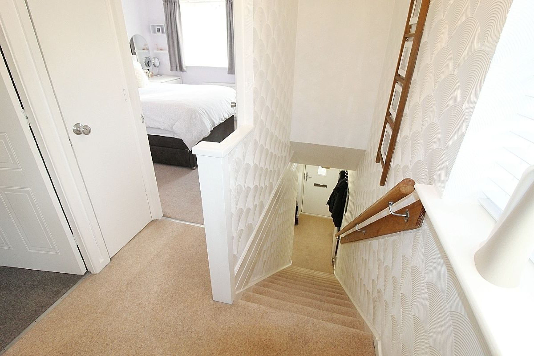 Landing A carpeted landing with a side facing upvc window, a loft hatch with ladder to a partially boarded loft creating additional space and doors giving access to two bedrooms, family bathroom and storage cupboard.