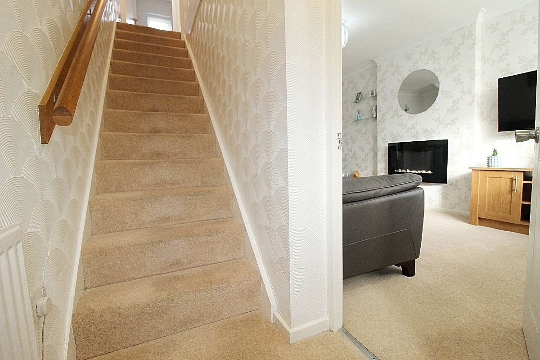 Entrance hall A glazed composite door invites you into a warm and welcoming cloakroom hallway with bespoke recess shelving, a radiator adds warmth and carpeted stairs lead to the first-floor accommodation whilst a door gives access to the lounge.