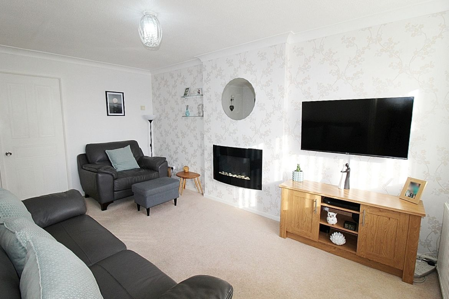 Open Plan Lounge/Diner w: 3.8m x l: 5.2m (w: 12' 6" x l: 17' 1") A spacious beautifully presented open plan living area with carpeted flooring seamlessly flowing throughout, a beautiful focal feature wall adopting a wall mounted fire catches the eye and a radiator creates warmth. A front facing upvc bay window allows an abundance of light to flow throughout, under stairs storage cleverly utilises space and a further door to the breakfast kitchen.