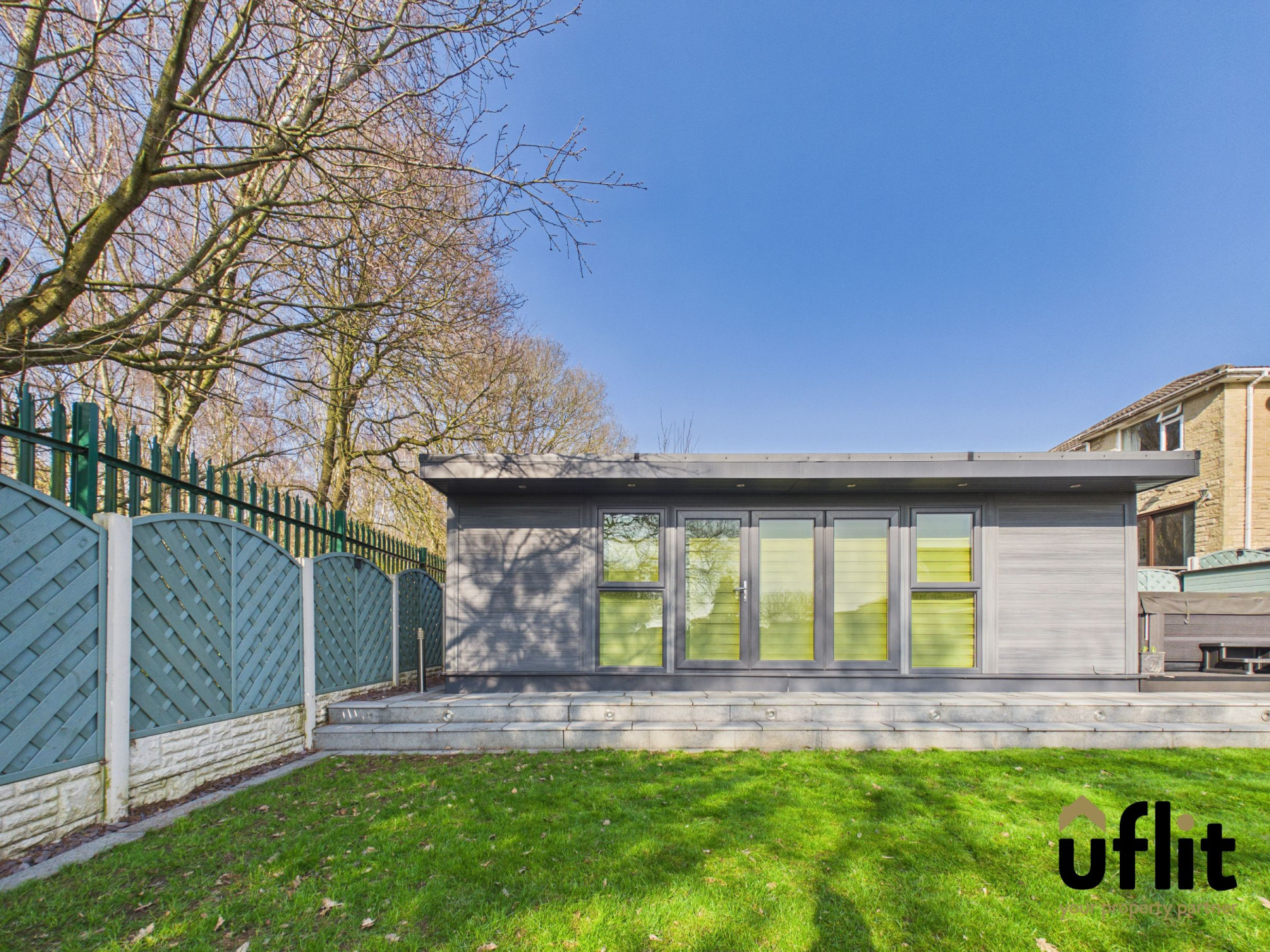 A substantial summerhouse positioned within the rear garden, currently utilised as a home gym. This versatile space offers excellent potential for a variety of uses including a studio, office, relaxation space or entertaining area.