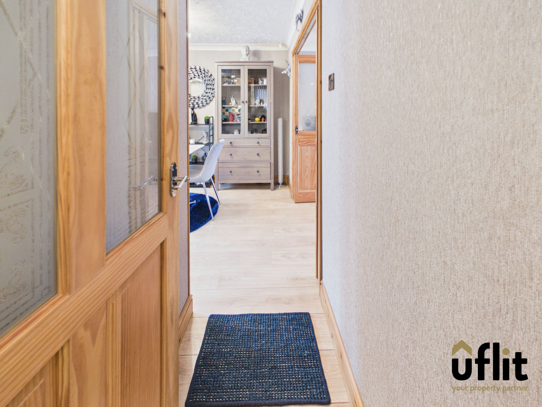 Enter the property through a composite front door into a welcoming entrance hall, finished with striking granite floor tiles that create a stylish and durable first impression. A window to the side allows natural light to brighten the space. From here there is a door providing internal access to the garage and stairs rising to the first floor.
