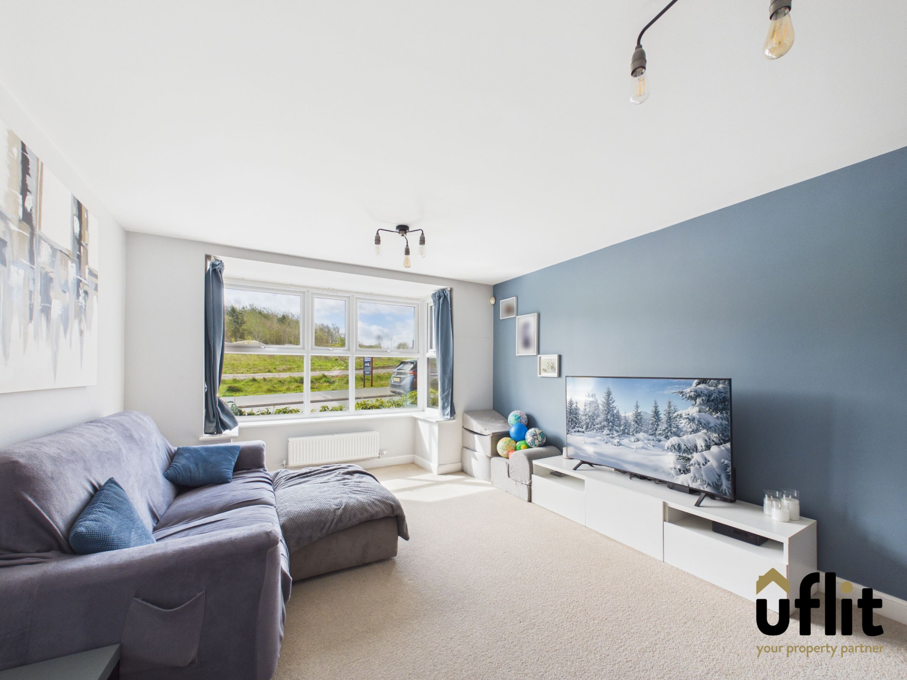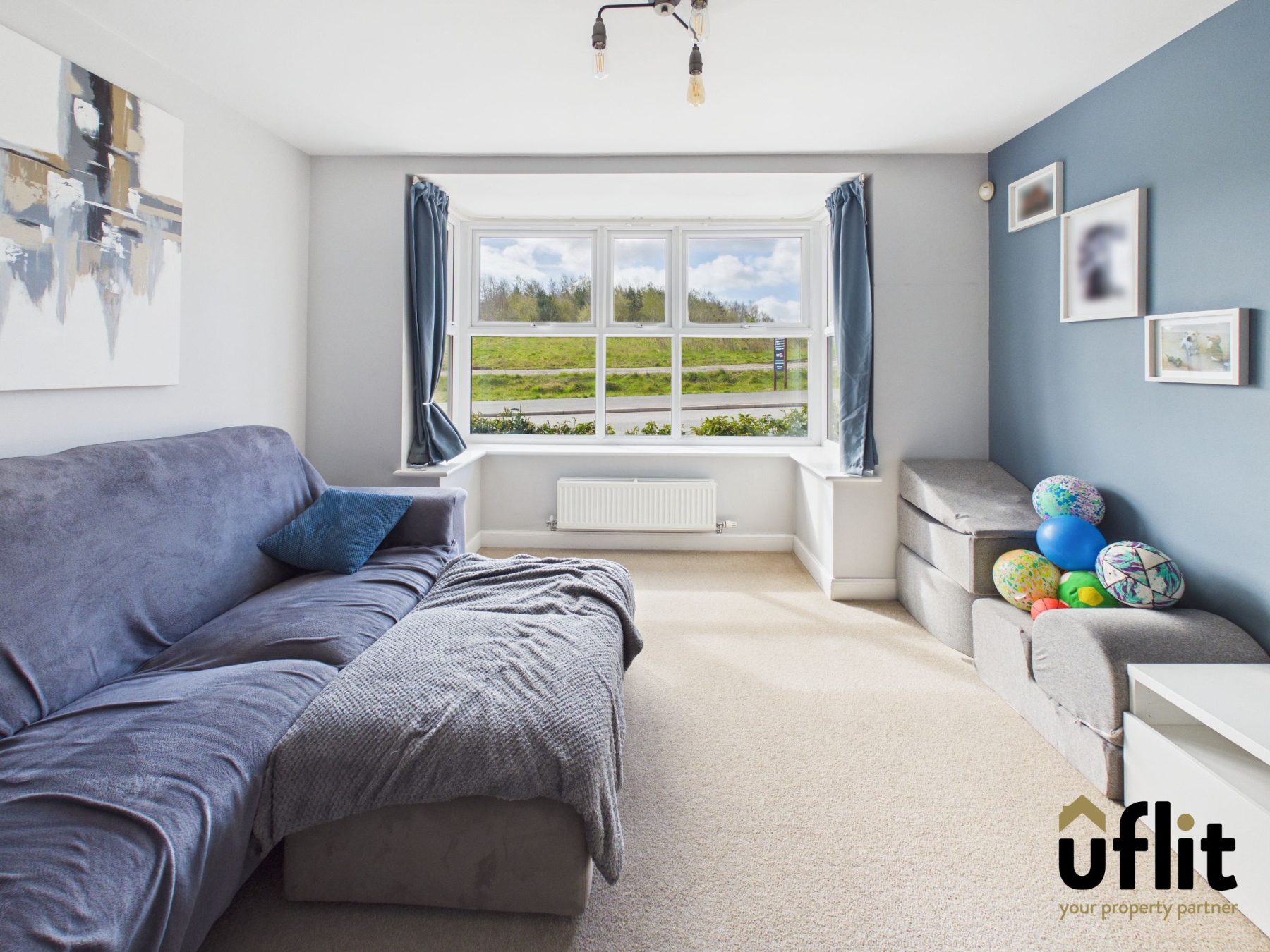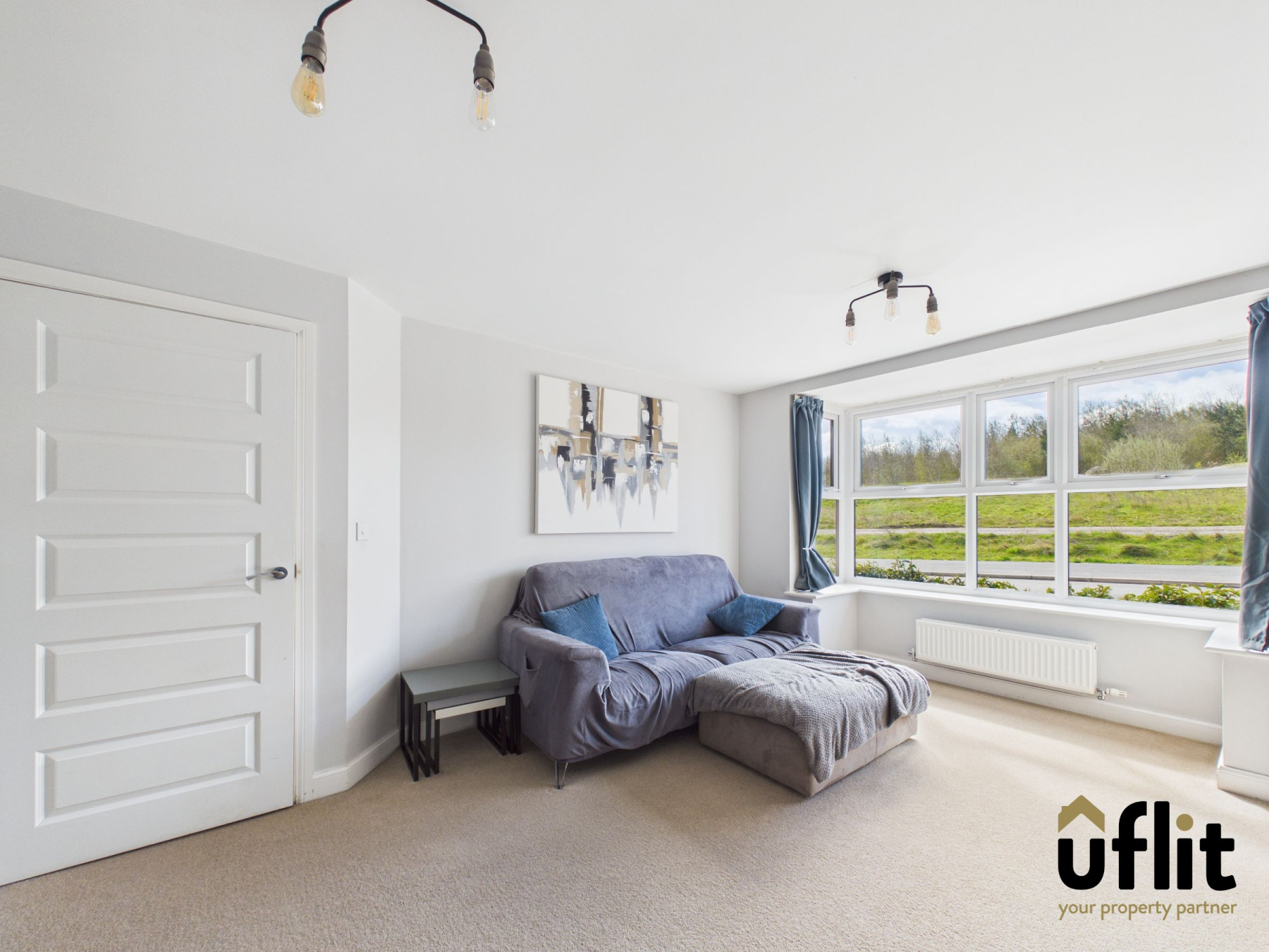A bright and comfortable living space featuring a bay window to the front elevation allowing natural light to flood the room. The lounge is finished with carpet flooring and a radiator, creating a cosy yet spacious area ideal for relaxing.