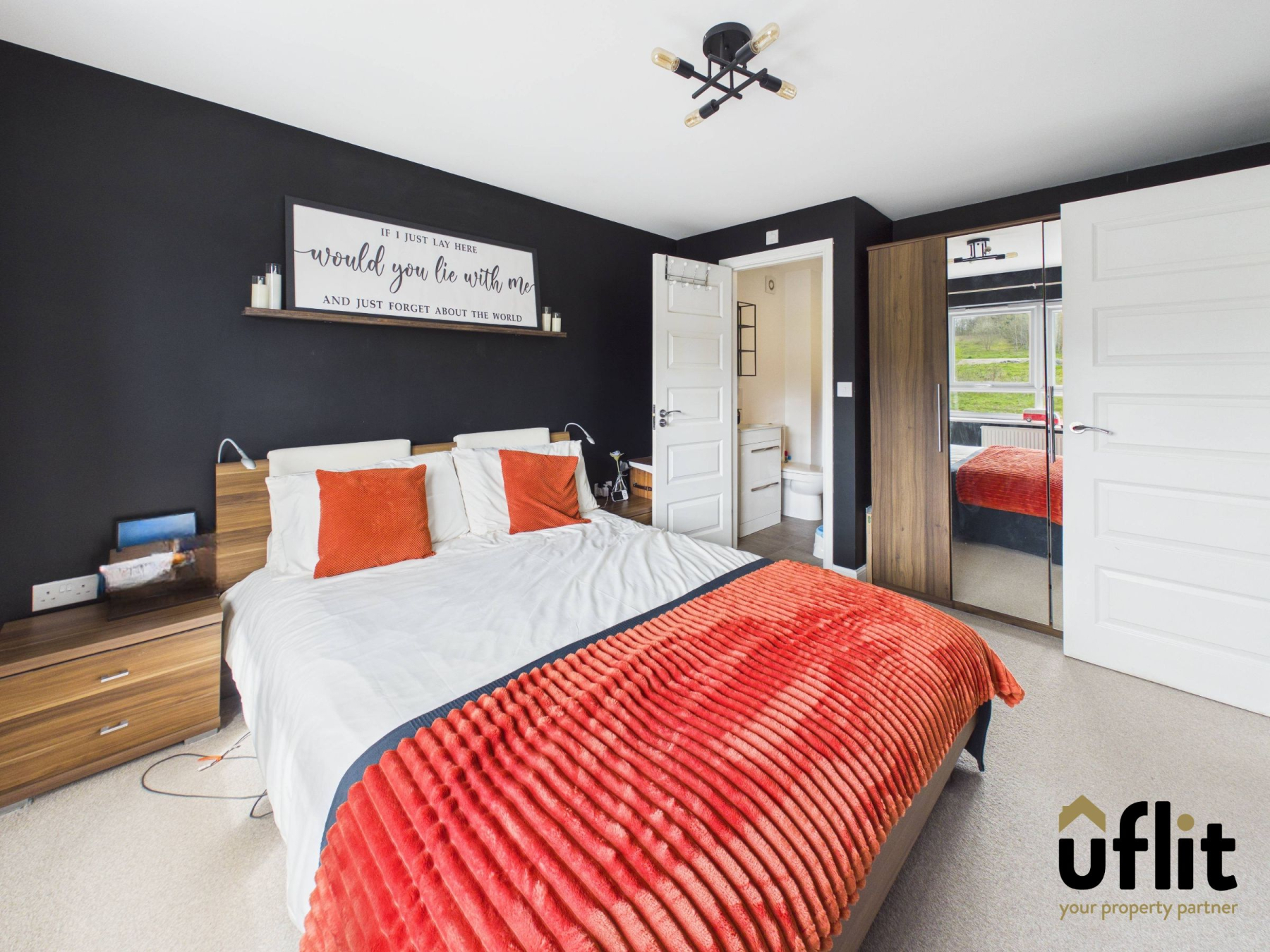 The master bedroom is positioned to the front of the property and features its own ensuite, complete with a shower, wash basin set within a vanity unit and a low-level WC.