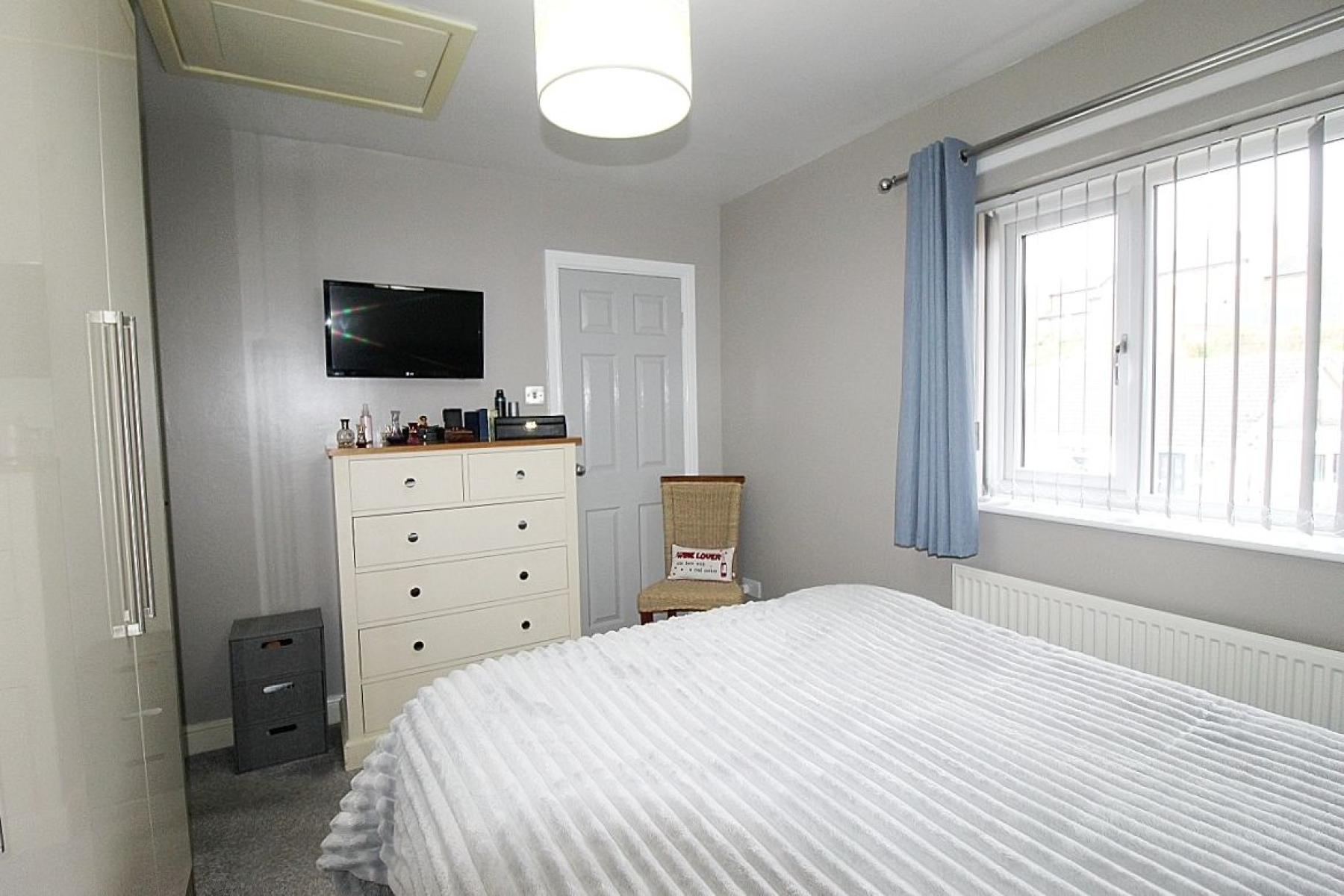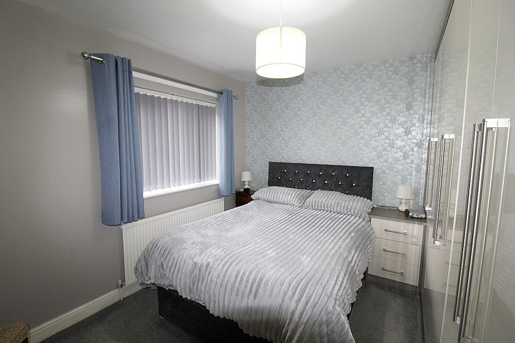A further double bedroom with a front facing upvc window, radiator and carpeted flooring.
