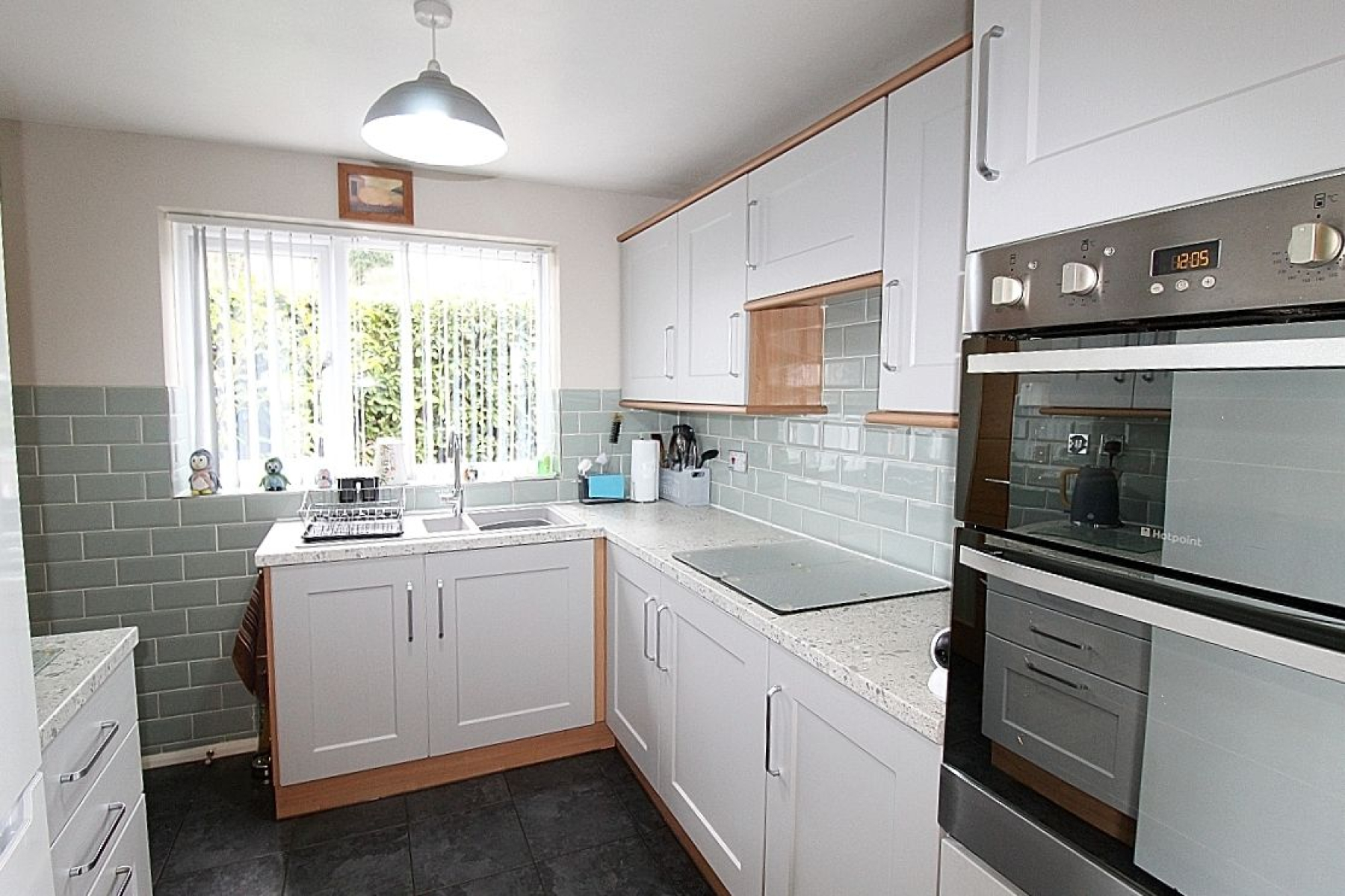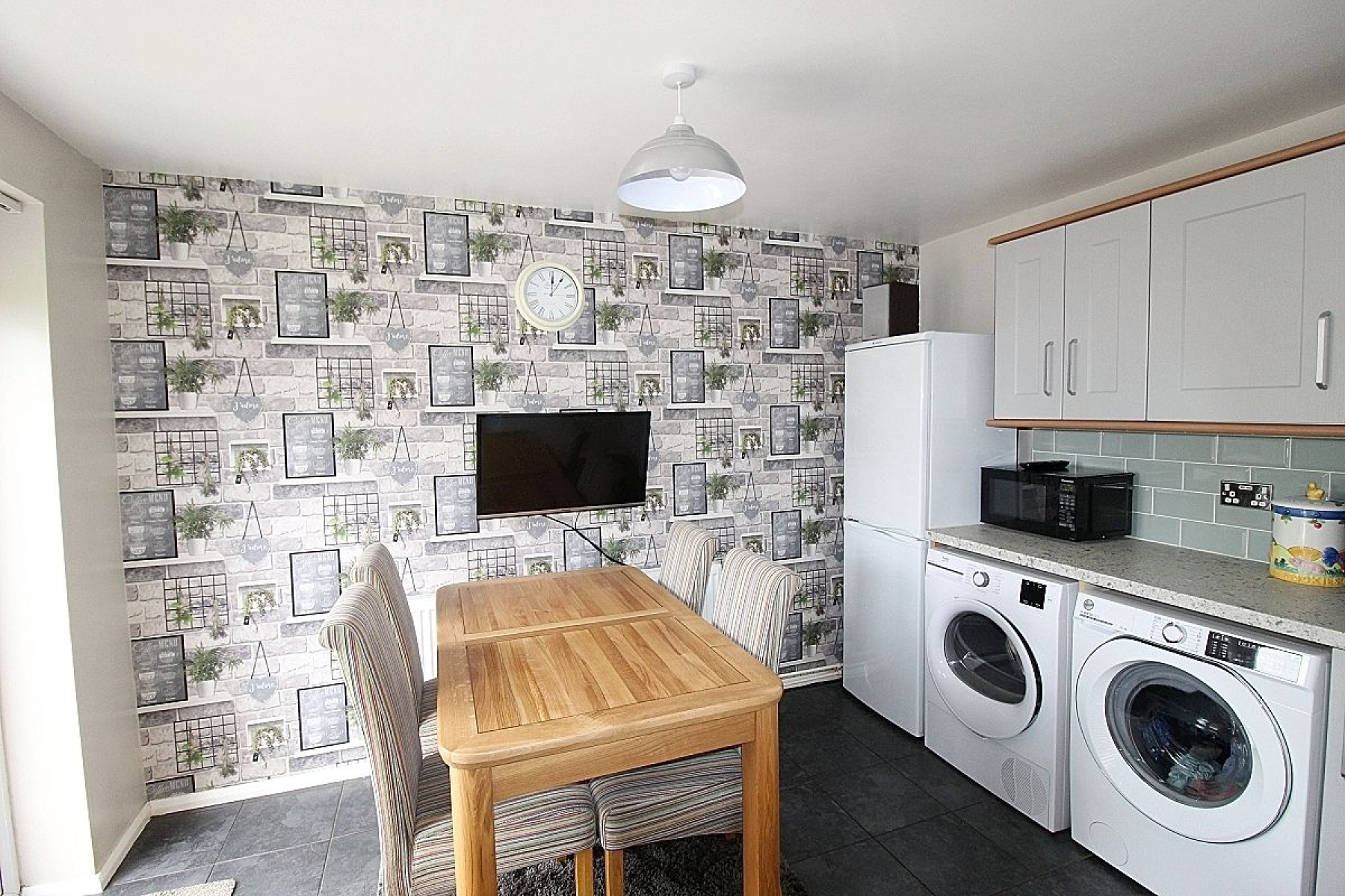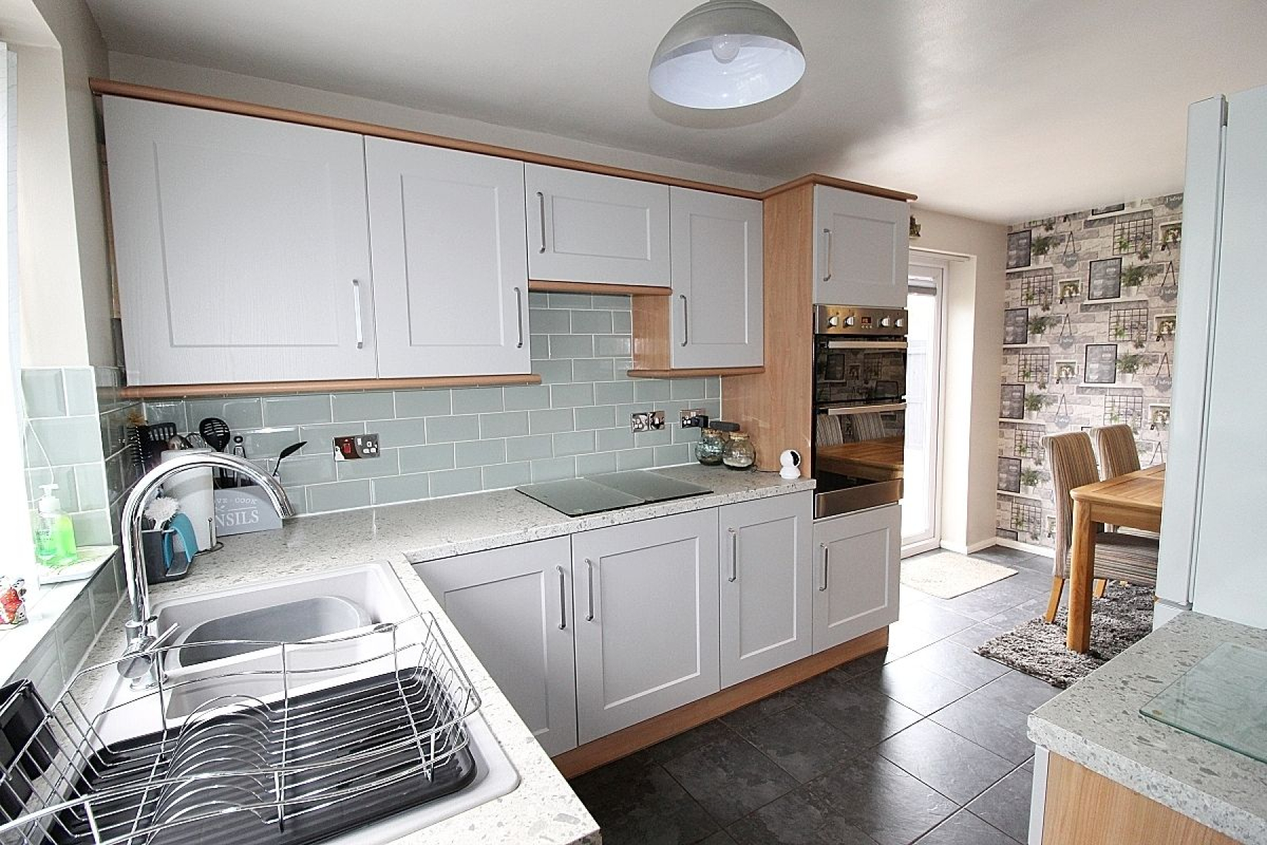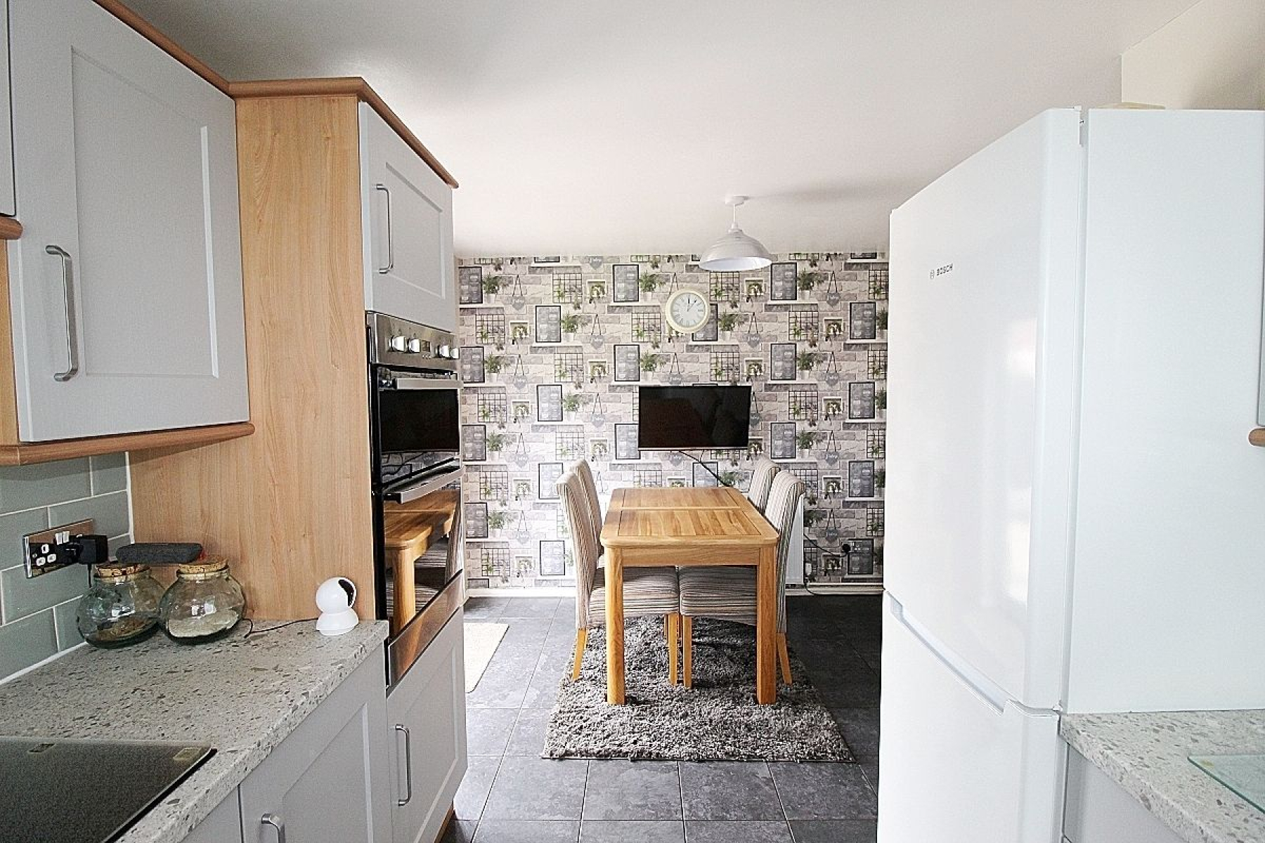 A great family entertainment space and the hub of this family home featuring a modern kitchen comprising of a range of wall and base units, complimentary worksurface areas, a counter top resin sink and tiled back panels with a built-in double oven, hob and plumbing for further utilities. Tiled flooring seamlessly flowing throughout, The whole area is illuminated with a front facing upvc window and French doors overlooking the garden and a radiator adopts a feature wall.