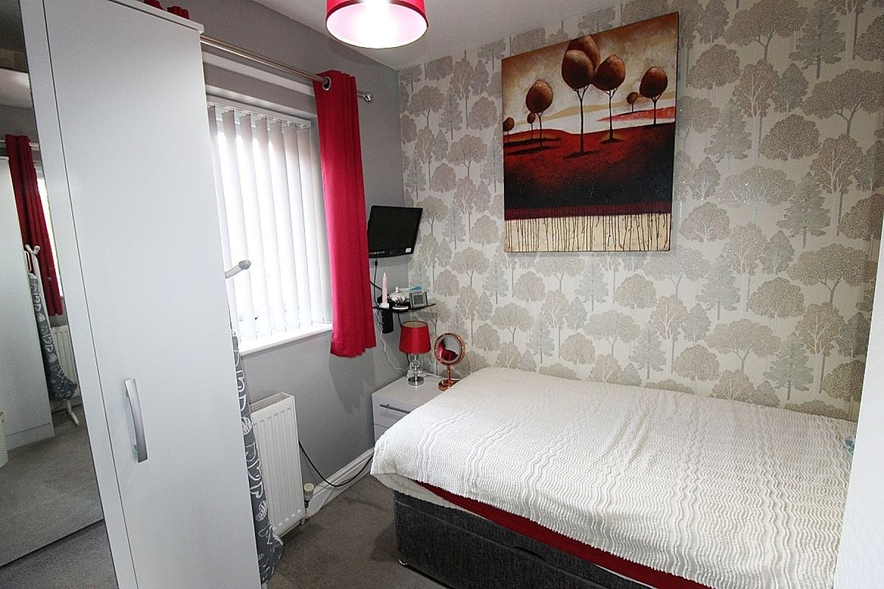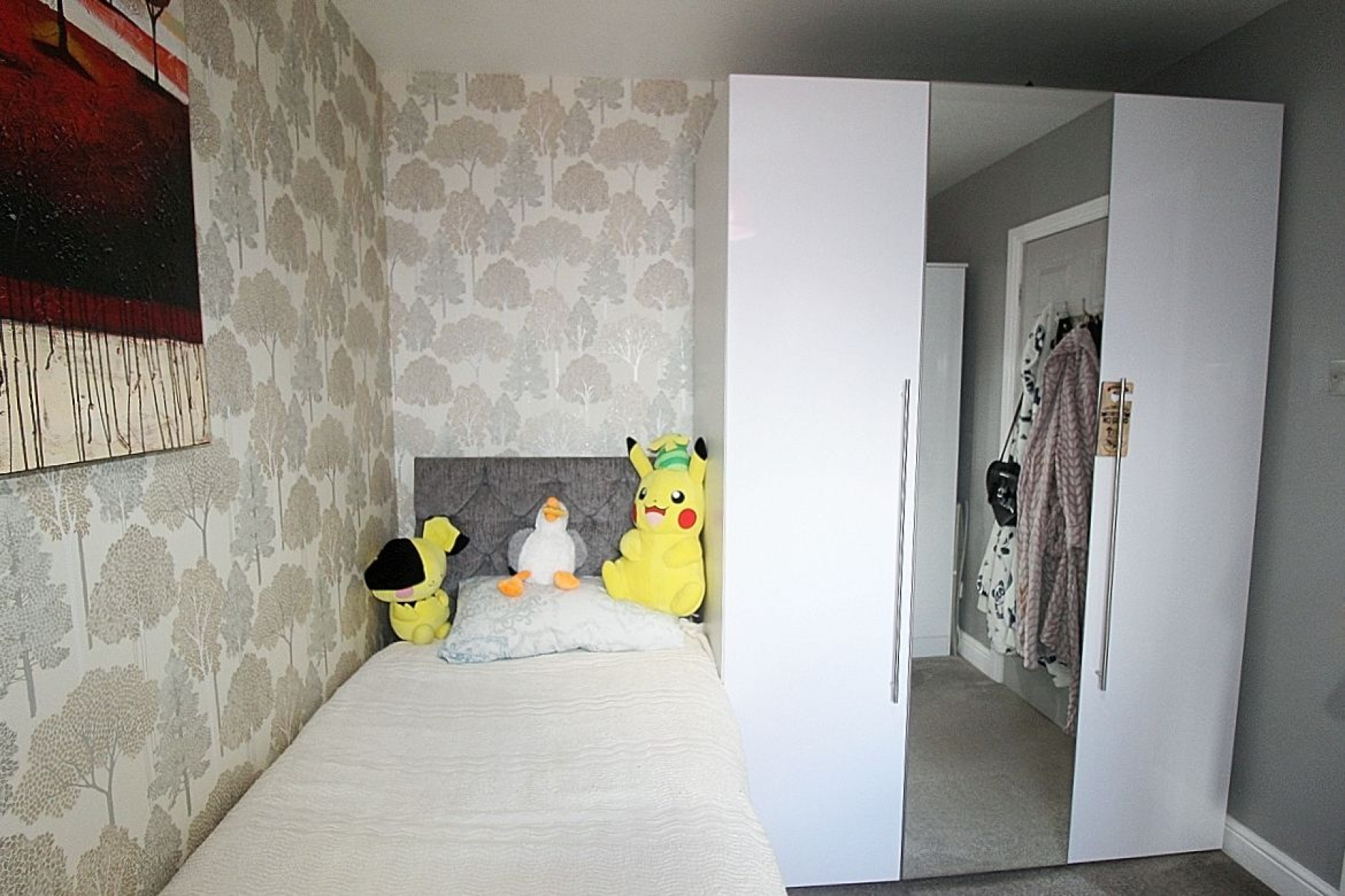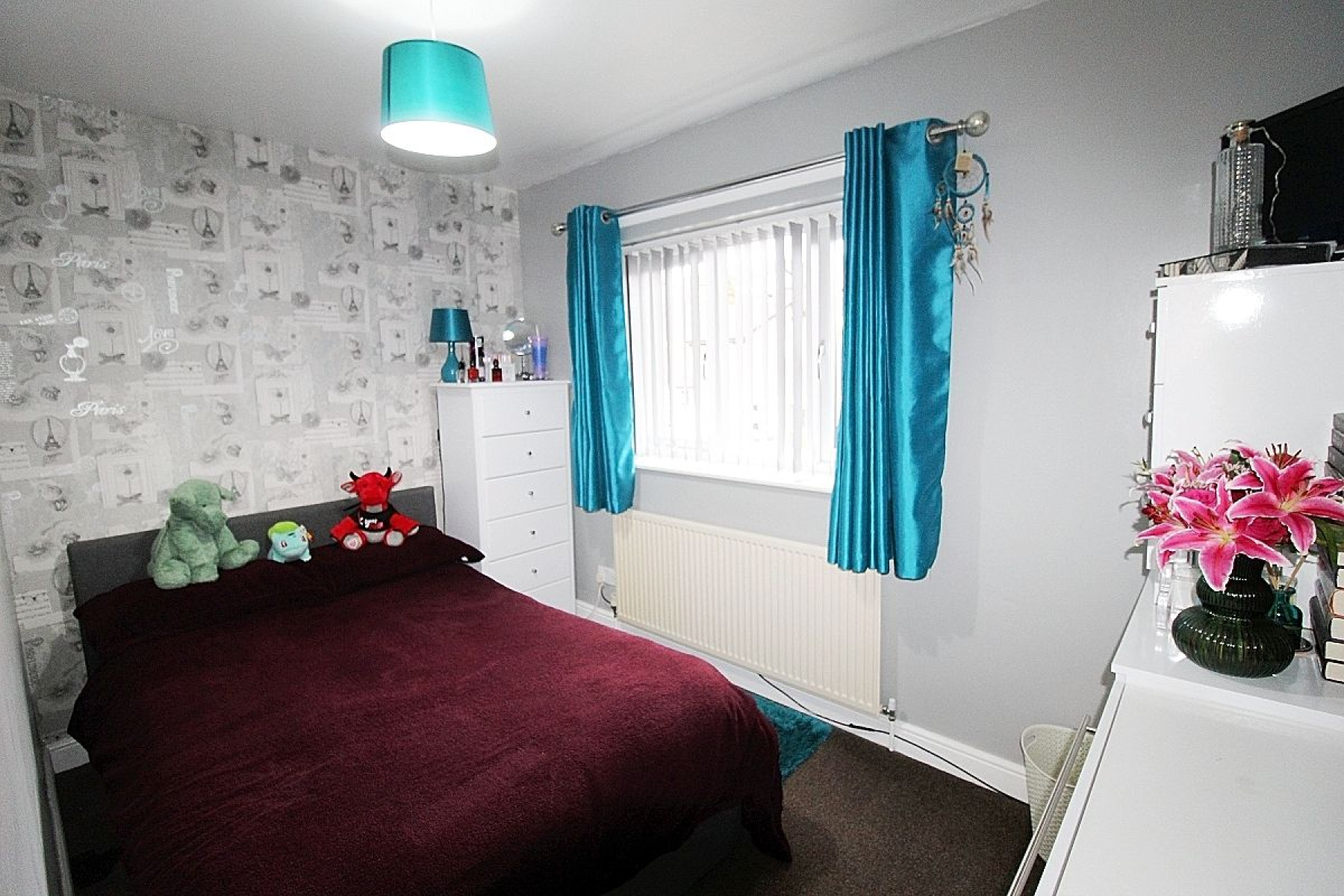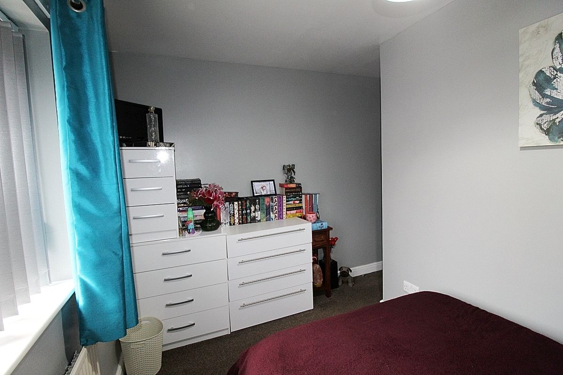 An ample sized third bedroom with carpeted flooring, radiator and a rear facing upvc window.