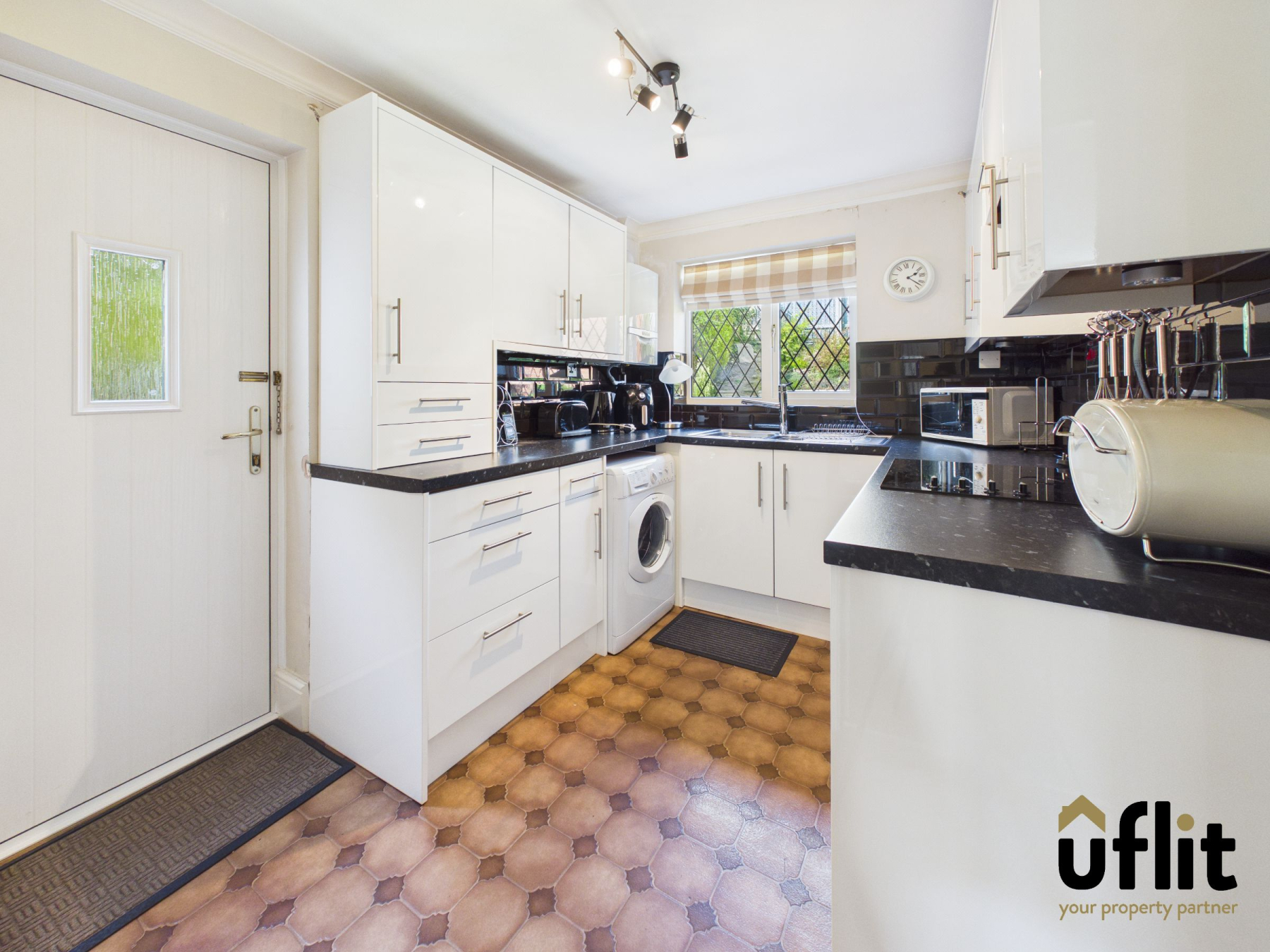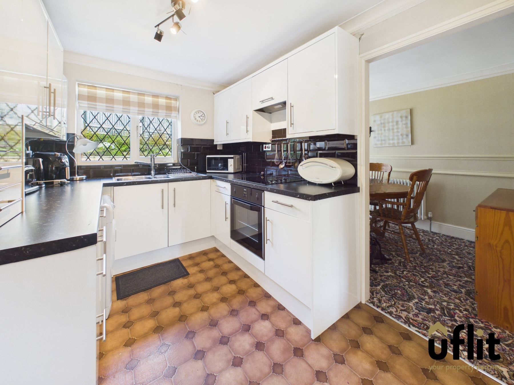 Accessed from the lounge, the kitchen is fitted with a range of wall and base units and includes an integrated electric oven, hob and extractor fan with lighting. Finished with vinyl flooring and partially tiled walls, the space also provides plumbing for a washing machine and room for a fridge freezer. A window overlooks the rear garden and a vertical radiator completes the space. The kitchen also offers access to the rear and flows through to the dining room.