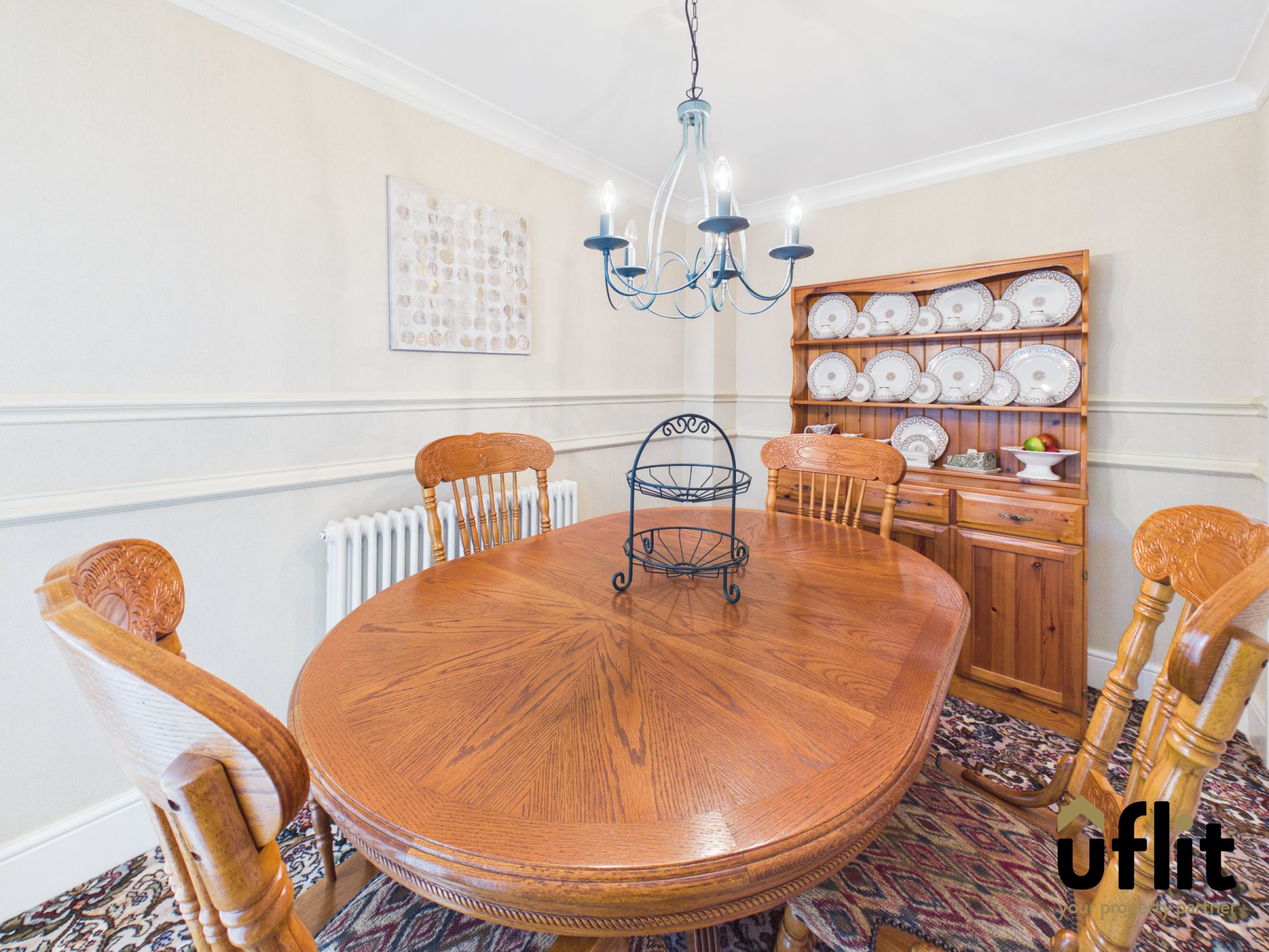 A great space for family meals and entertaining, the dining room is finished with carpeted flooring and a radiator. French doors open out onto the rear garden, allowing plenty of natural light and creating a seamless indoor-outdoor connection.