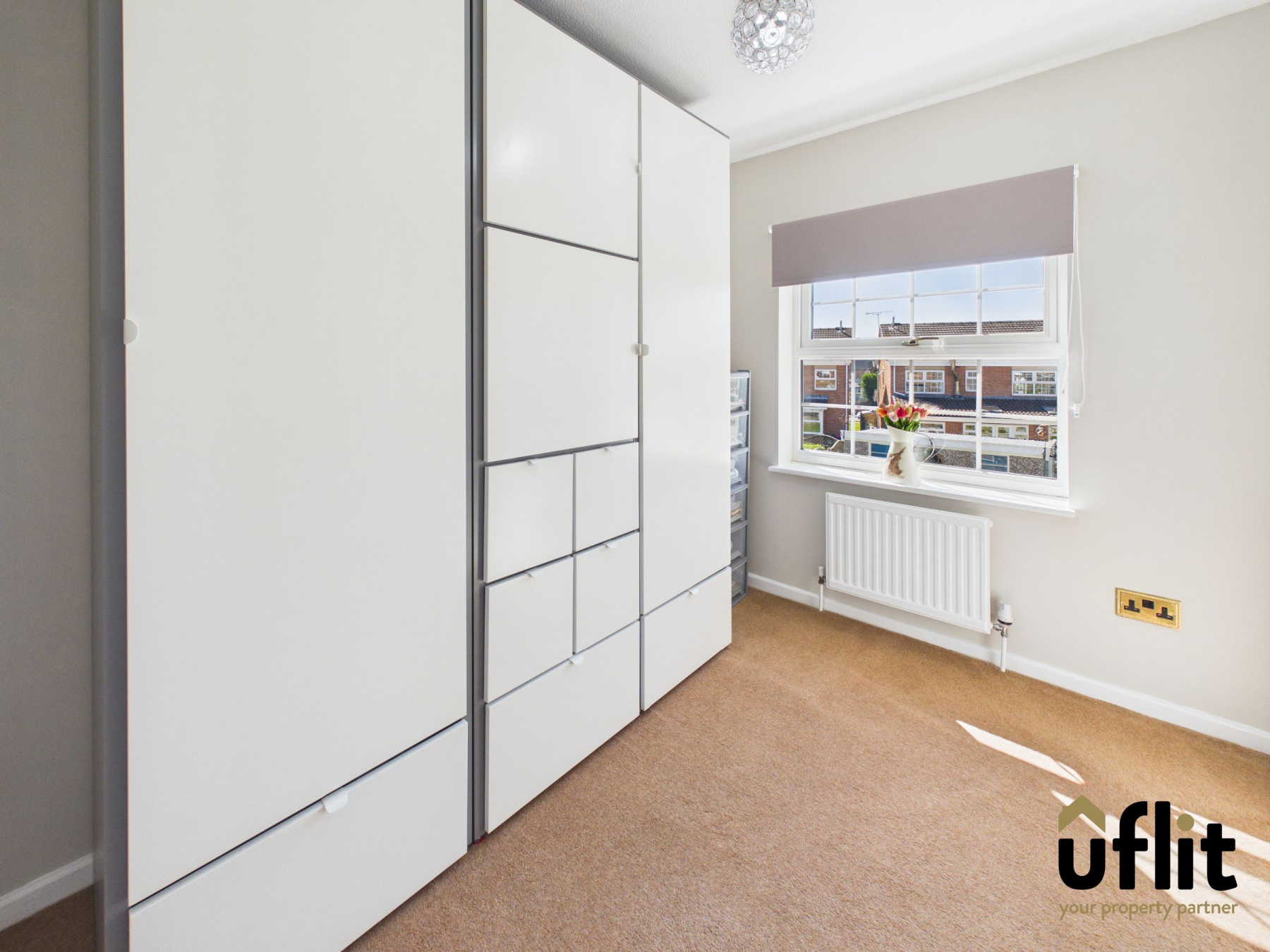 A further rear-facing room with carpeted flooring and a radiator, currently utilised as a wardrobe/dressing room, offering flexibility for a variety of uses.