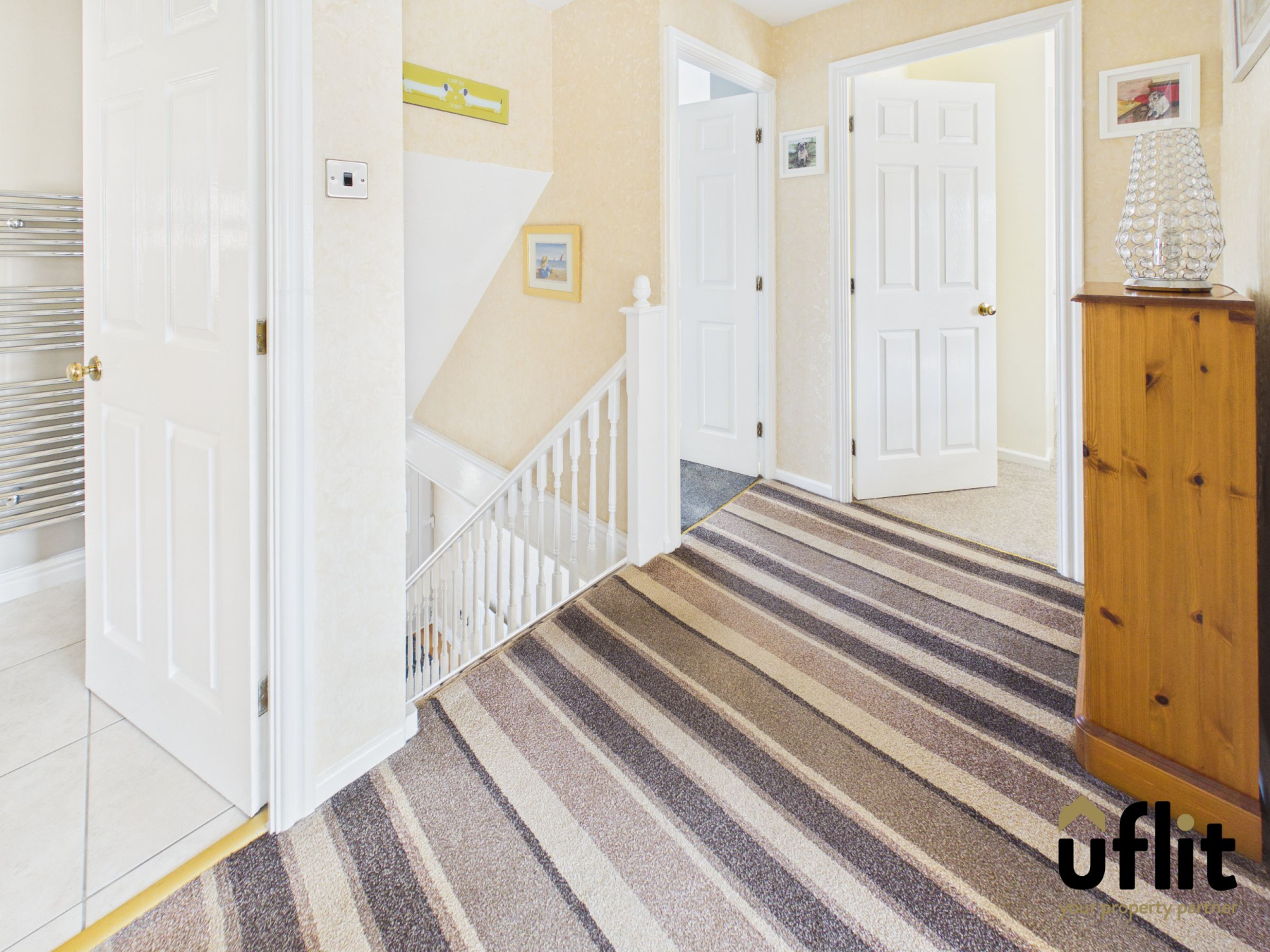 A modern family bathroom serves the additional bedrooms and includes useful built-in storage/wardrobe space.