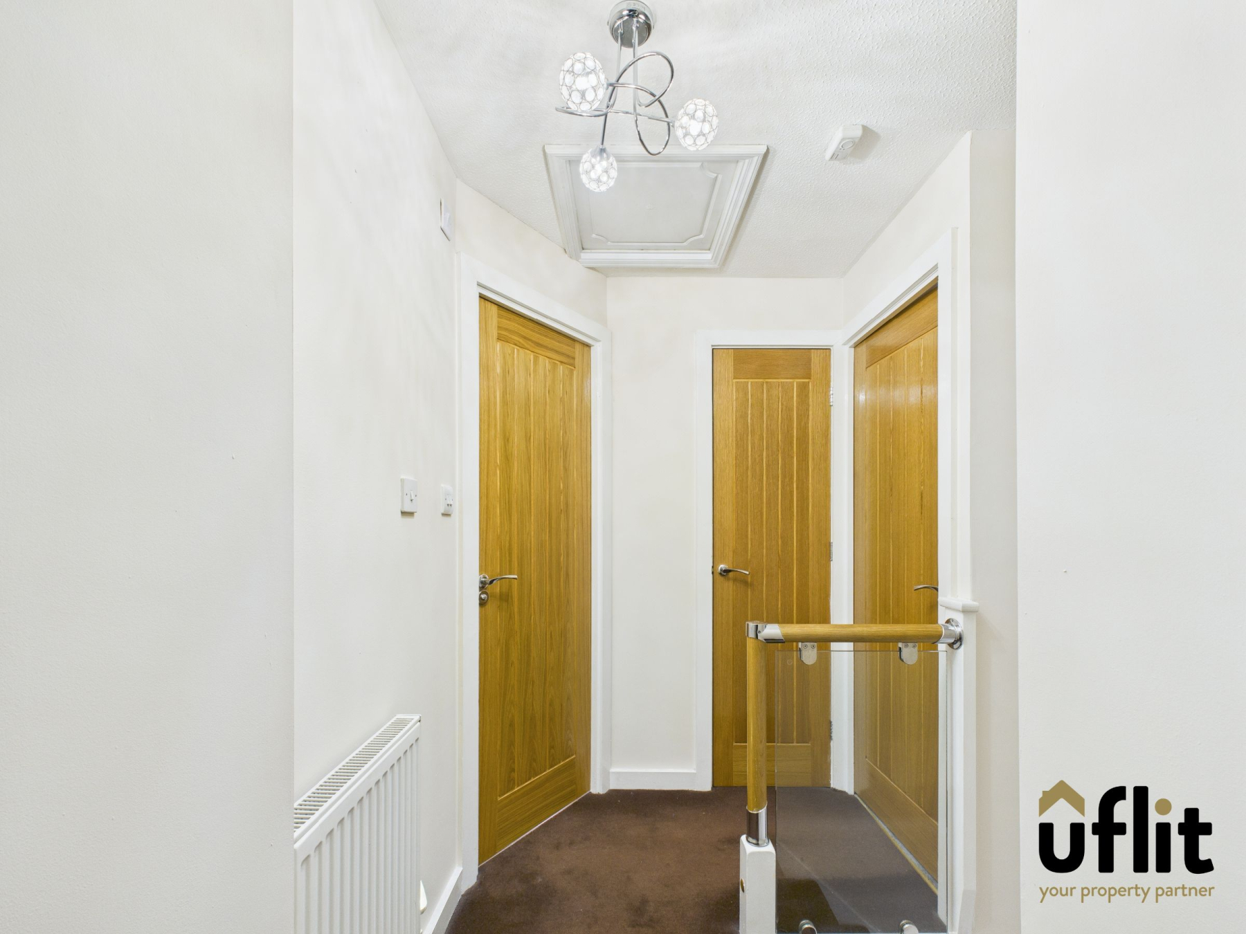 A carpeted landing providing access to three bedrooms, the family bathroom and a useful airing cupboard.