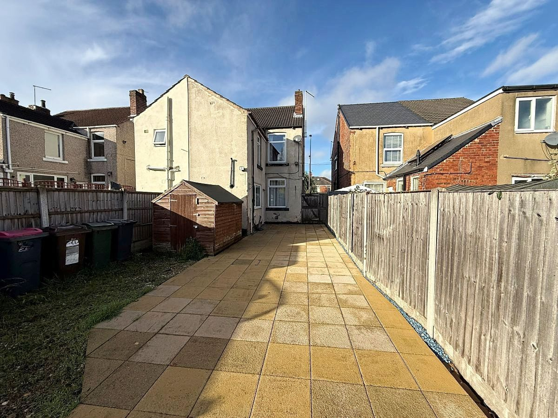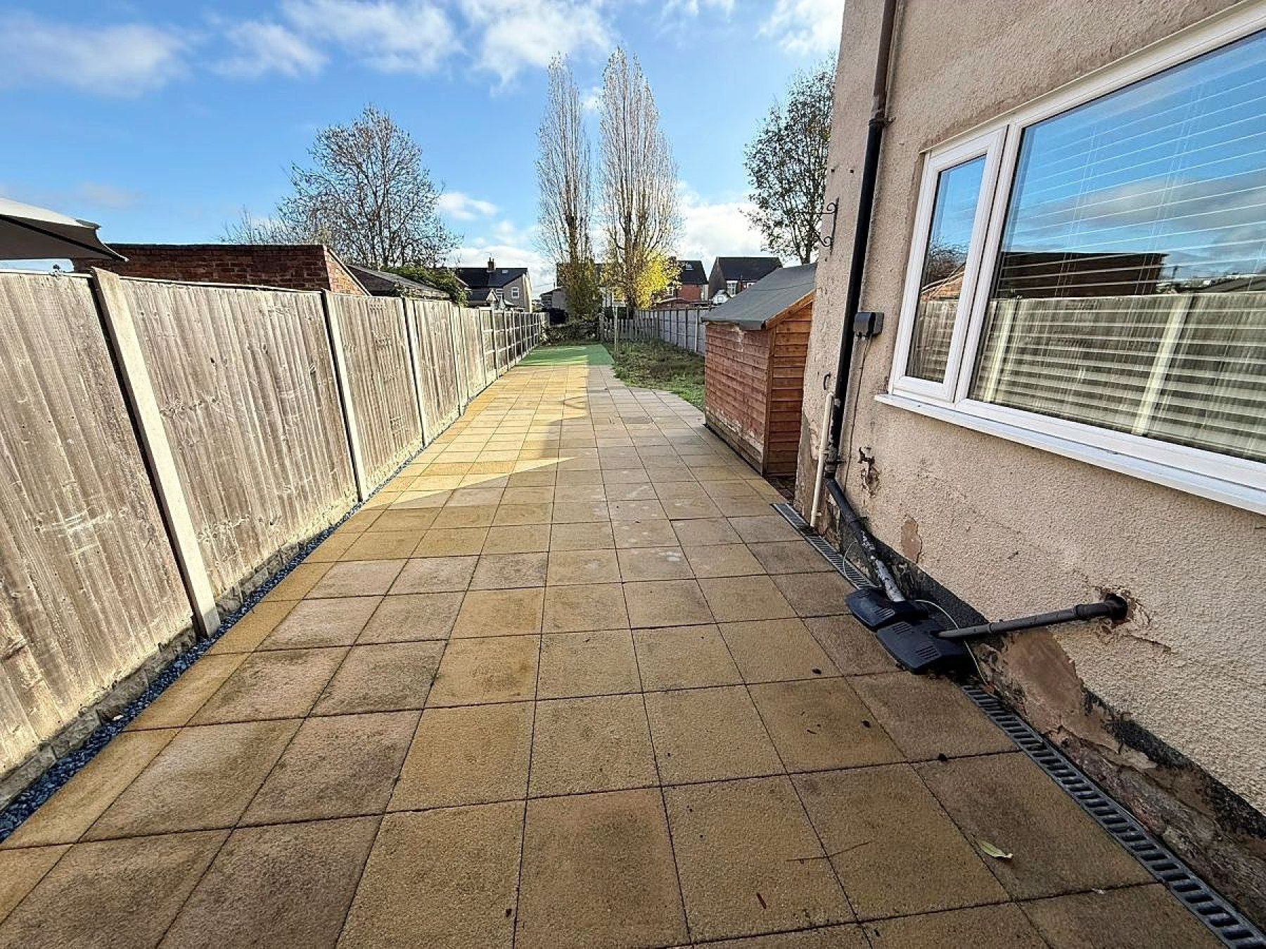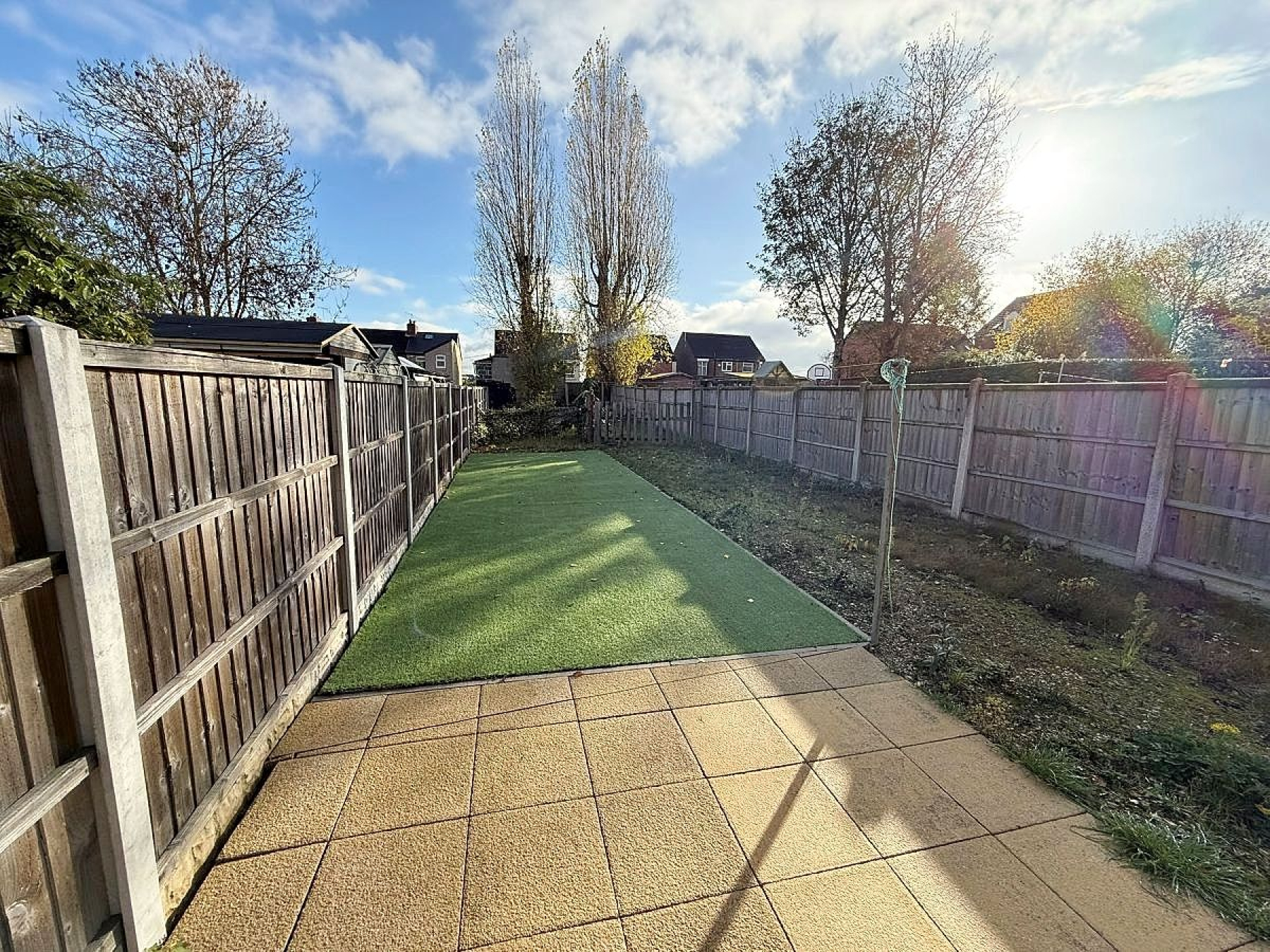 The property is set back from the roadside, with a charming low wall enclosing a lawned garden. A paved pathway leads to a secondary gate, where the paving continues seamlessly around the property to form a spacious patio at the extensive rear. This opens onto a low-maintenance AstroTurf garden, beyond which lies an additional garden area and ample off-road parking, accessed via an access road at the rear of the property.